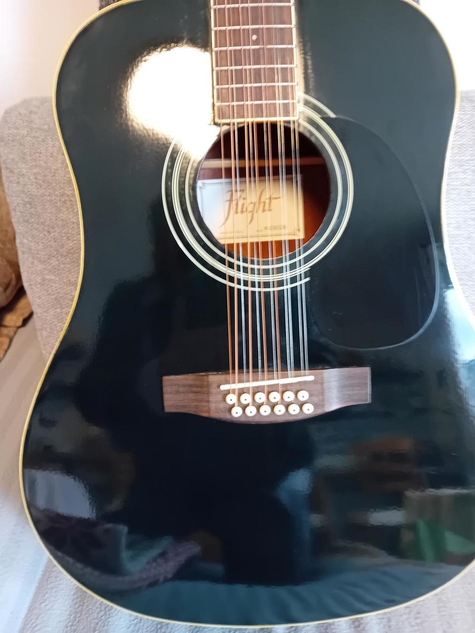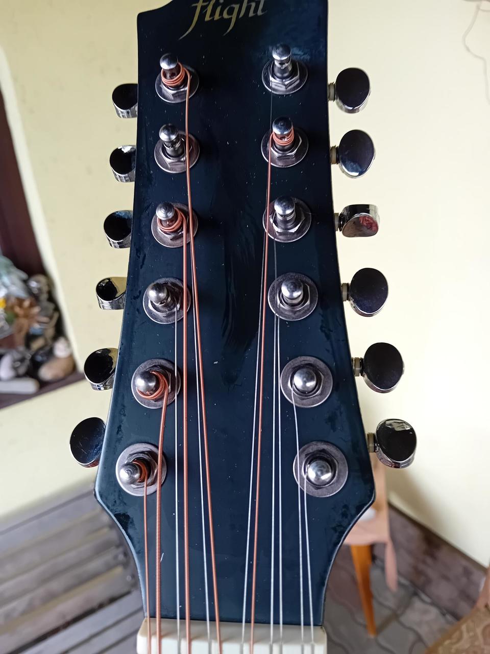 12-ti strunná elektroakustická kytara Flight, equalizer + kabel + sada strun + kapodastr + ladička klip + obal. Nová nevyužitá.