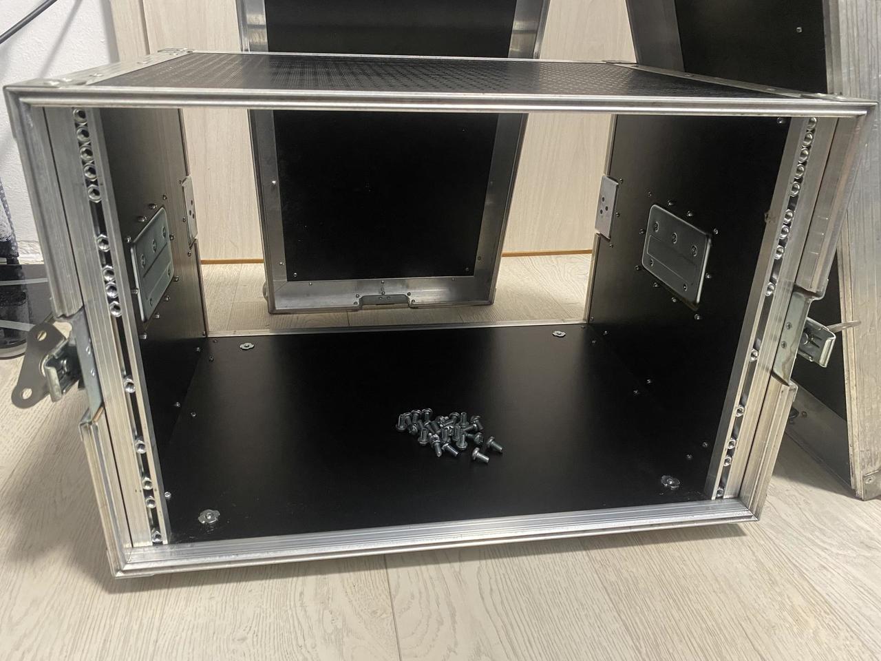 Prodám 19” rack case 7U hloubky 40 cm. Je vyroben z odlehčených stěnových výplní. Nese drobné známky opotřebení od převozu, ale jinak je v pořádku.