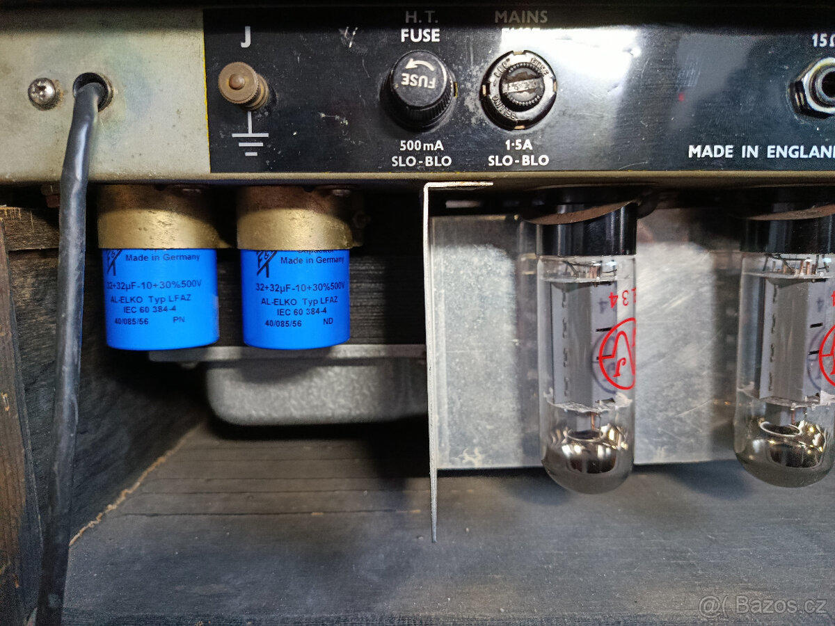 Celolampový 50W zesilovač z roku 1967: Selmer Treble 'n' Bass 50 MK III, na tento aparát začínali Pink Floyd... Nové filtrační kondenzátory F+T, v preampu jsou ECC83 TAD + 1x Tung Sol, koncový stupeň 2x EL34 JJ. Levně...