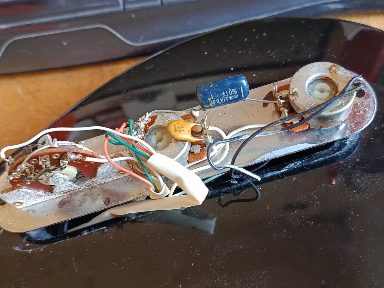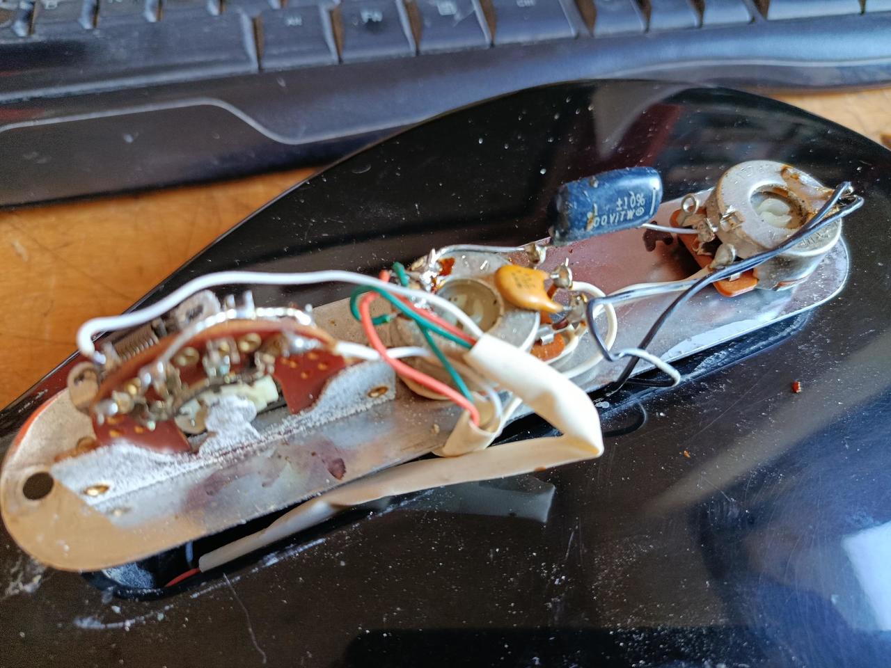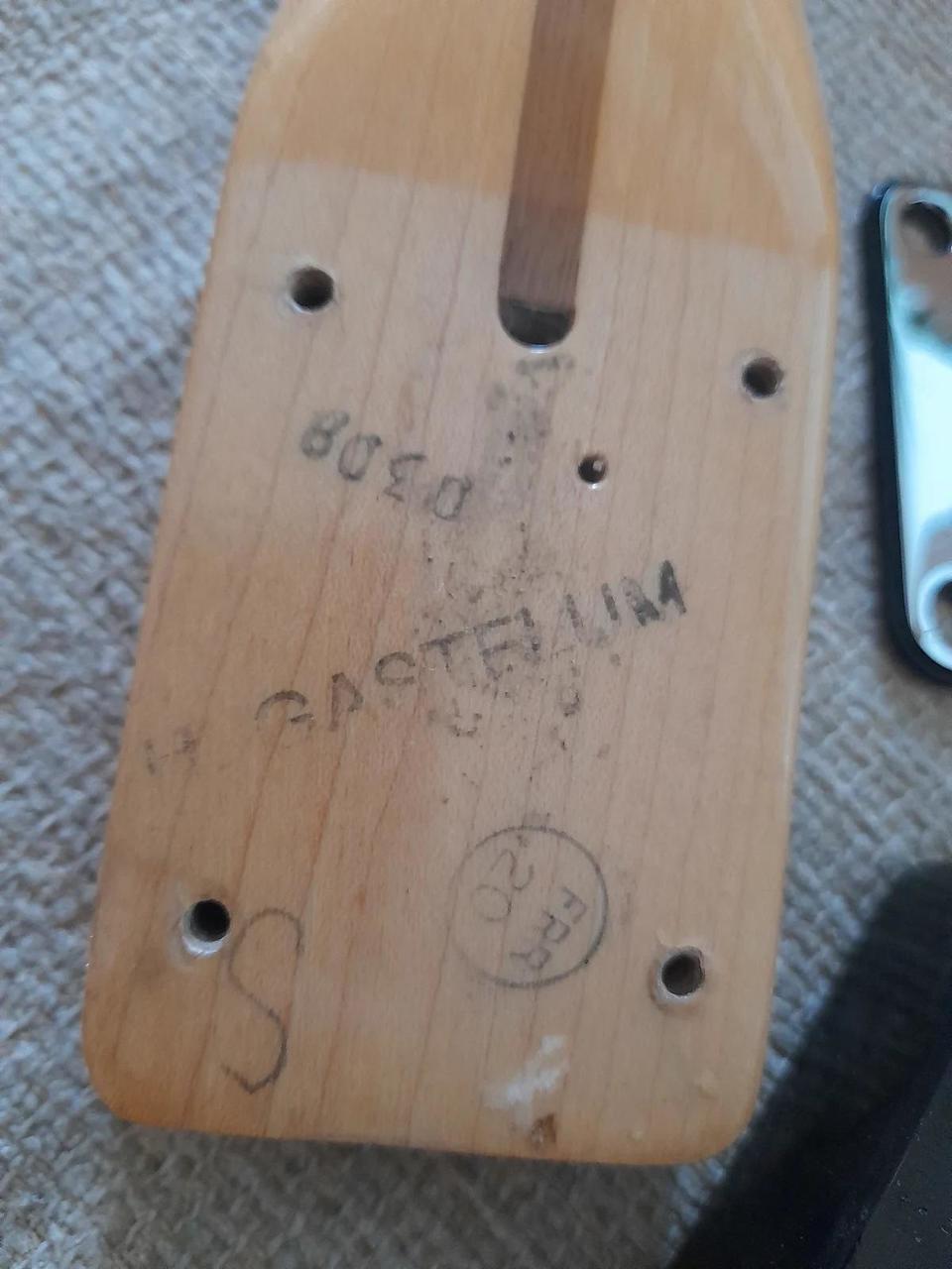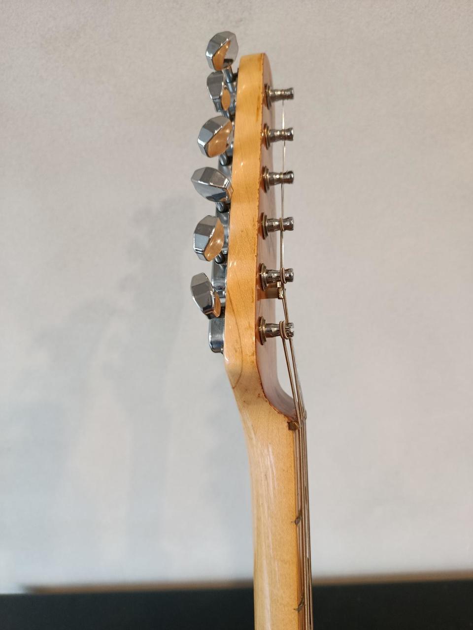 vintage Fender Telecaster vyrobený mezi lety 1978 - 1981, (potenciometry a tělo je datováno 1981). Tělo a krk vyrobeny na konci 70.let, sestaveno ve Fenderu v roce 1981. Krk vyrobil sám legendární Herbie Gastelum, který pracoval u Fendera v letech 1961 - 2017 a byl proslulý jako výrobce těch nejlepších krků, který učil další mistry z Custom Shopu. A opravdu - krk je příjemně macatý, akorát padne doruky! Bohužel předchozí majitel přestříkal hlavu na černo, nyní má tedy nové logo.