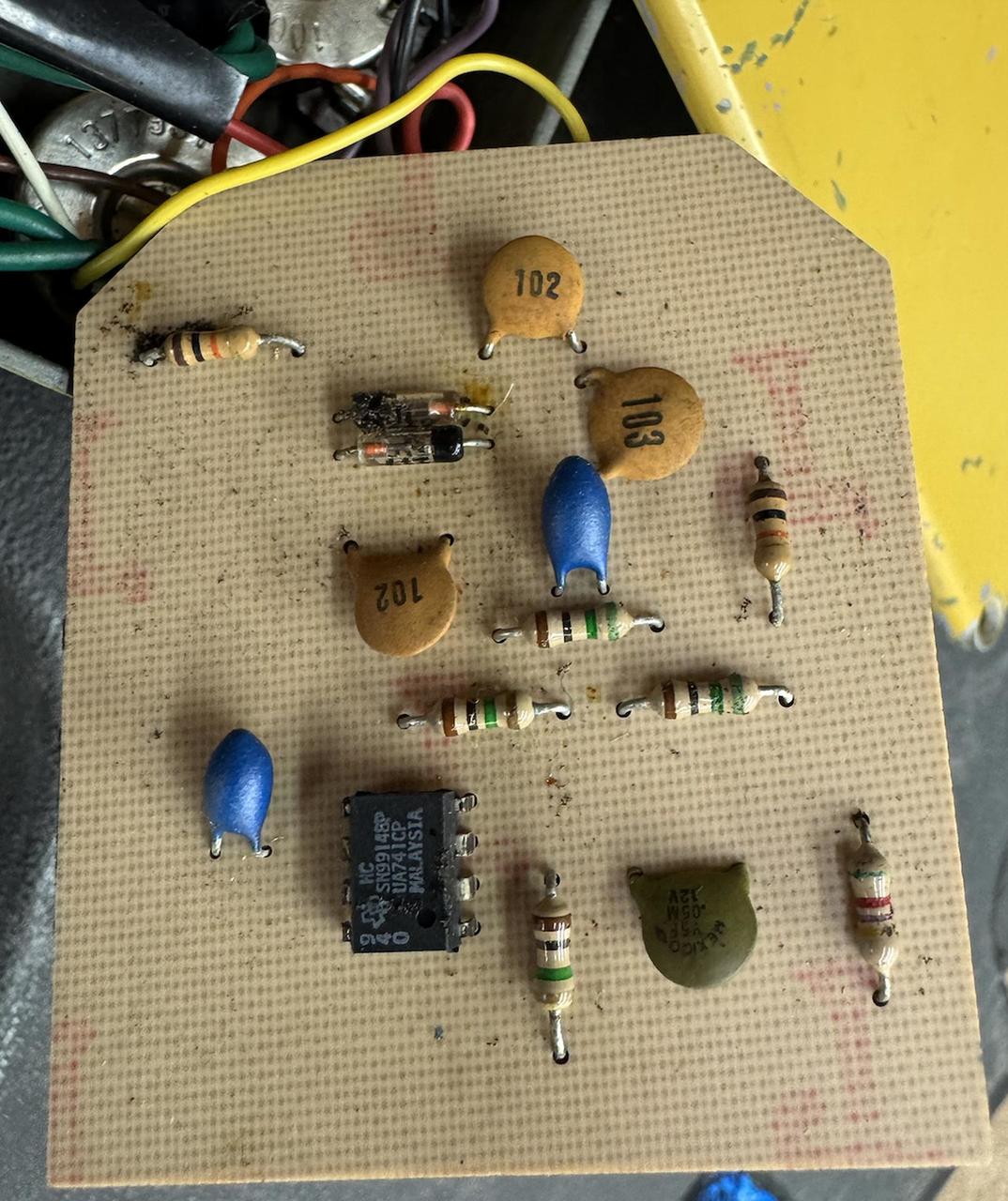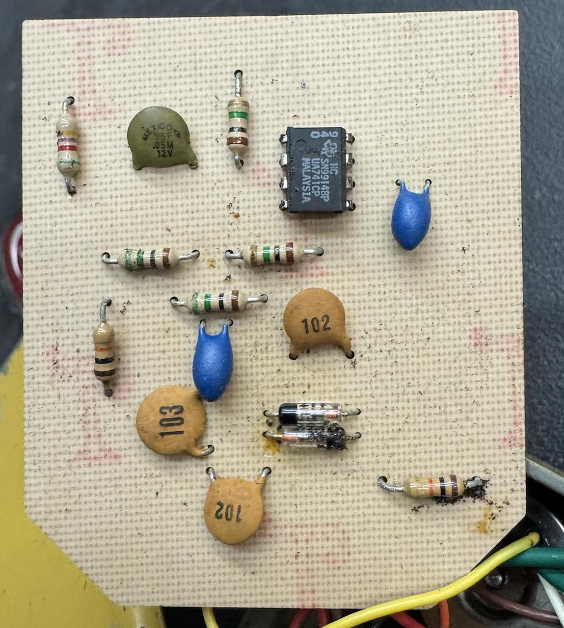 Malaysia Chip, vyhledávaný pro tento šváb + 15 součástek:)- masakr. Mám dva a ani jsem je neporovnával, jeden musí do světa:) Můžeme případné porovnat u nás ve studiu na Praze 3 Tu díru tam udělal předešlý majitel, a dá se takto připojit jednoduše propojkou do pedal board. Je to teda maso:-) ale je to praktické. "fuzz/distortion/overdrive" pedal Dave and Randy, budete vědět koho myslím. https://www.facebook.com/StableStudiosAudioVideoFactoryRecording