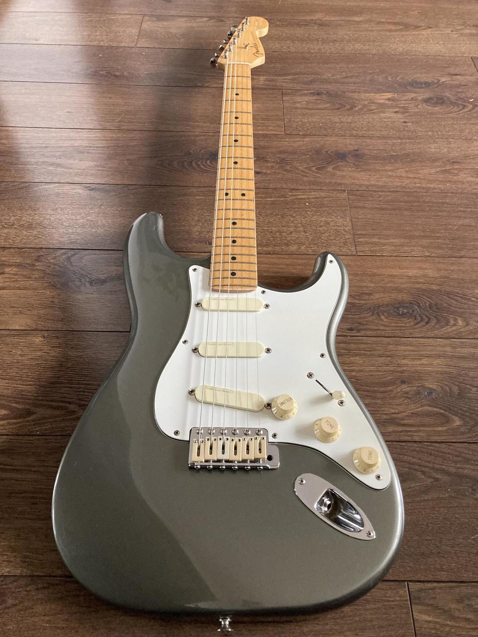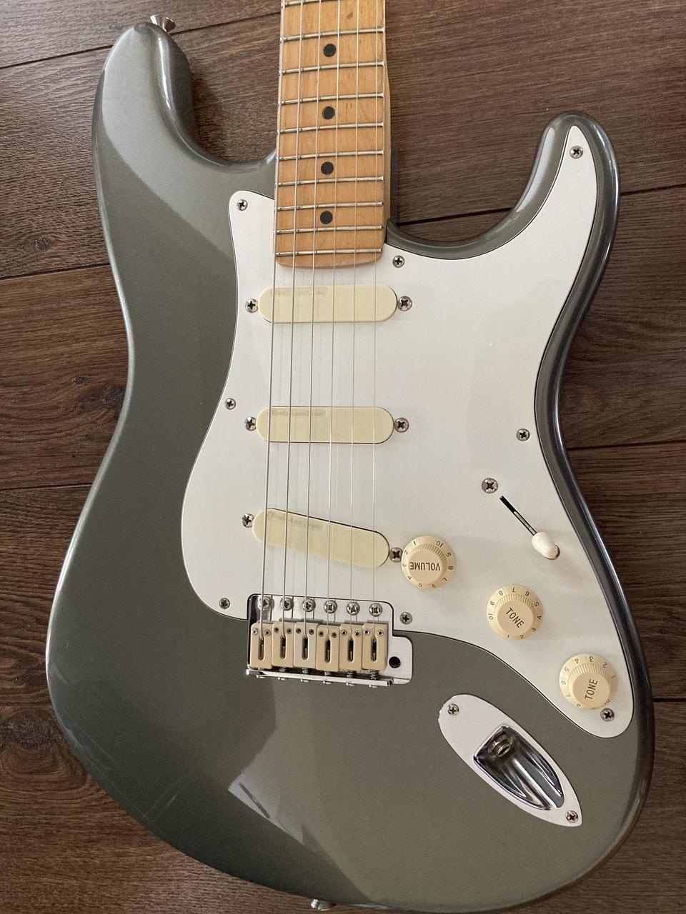 Predám Fender Stratocaster Eric Clapton Signature Made in USA 1989 vo farbe Pewter. Telo jelša, krk javor z jedného kusu profil krku Soft V, rádius hmatníku 9,5, snímače Fender Lace Sensor Gold, TBX Tone control, aktívny mid-boost circuit. Kobylkové kamene graphtech TUSQ Tone Made in Canada, pôvodné Fender sú k dispozícii. Kufor Fender súčasťou. Cena dohodou.