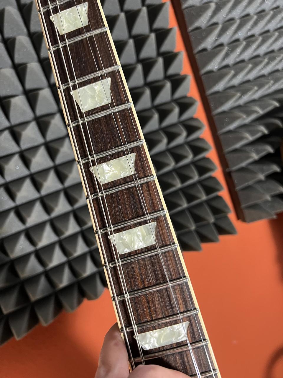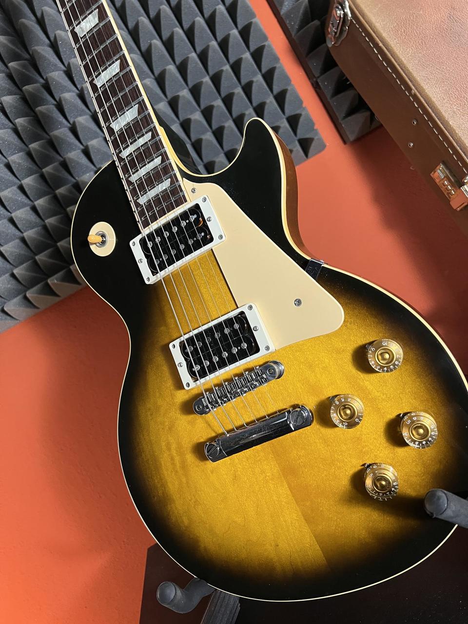 Nabízím tuto gibsonovskou klasiku z good wood éry v barvě tobacco burst. Kytara s osobností a charakterem, plný a úderný zvuk, sladké medové zabarvení v sólech, ideální nejen pro slashovské skopičiny. Kytara je osazena řadou vylepšení, které ji přibližují jak legendárním padesátkovým modelům, tak moderním potřebám. Kytara má trochu buckle-rash, pár oděrek odpovídajících klubovému životu, ale po celý čas o ni bylo pečlivě postaráno a na svůj věk vypadá skvěle, funkčnost 100%.