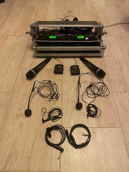 Prodám dvě bezdrátové sady mikrofonů. Celkem dva přijímače (band 8, 570-600MHz) a ke každému mikrofon do ruky s vložkou D5, bodypack, hlavový mikrofon C520L, klopový mikrofon C99L a redukce na 6,3 jack. Cena za komplet