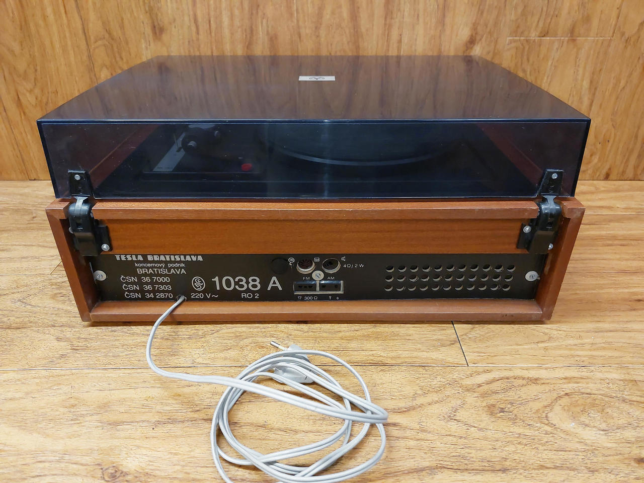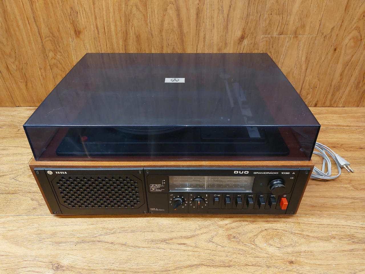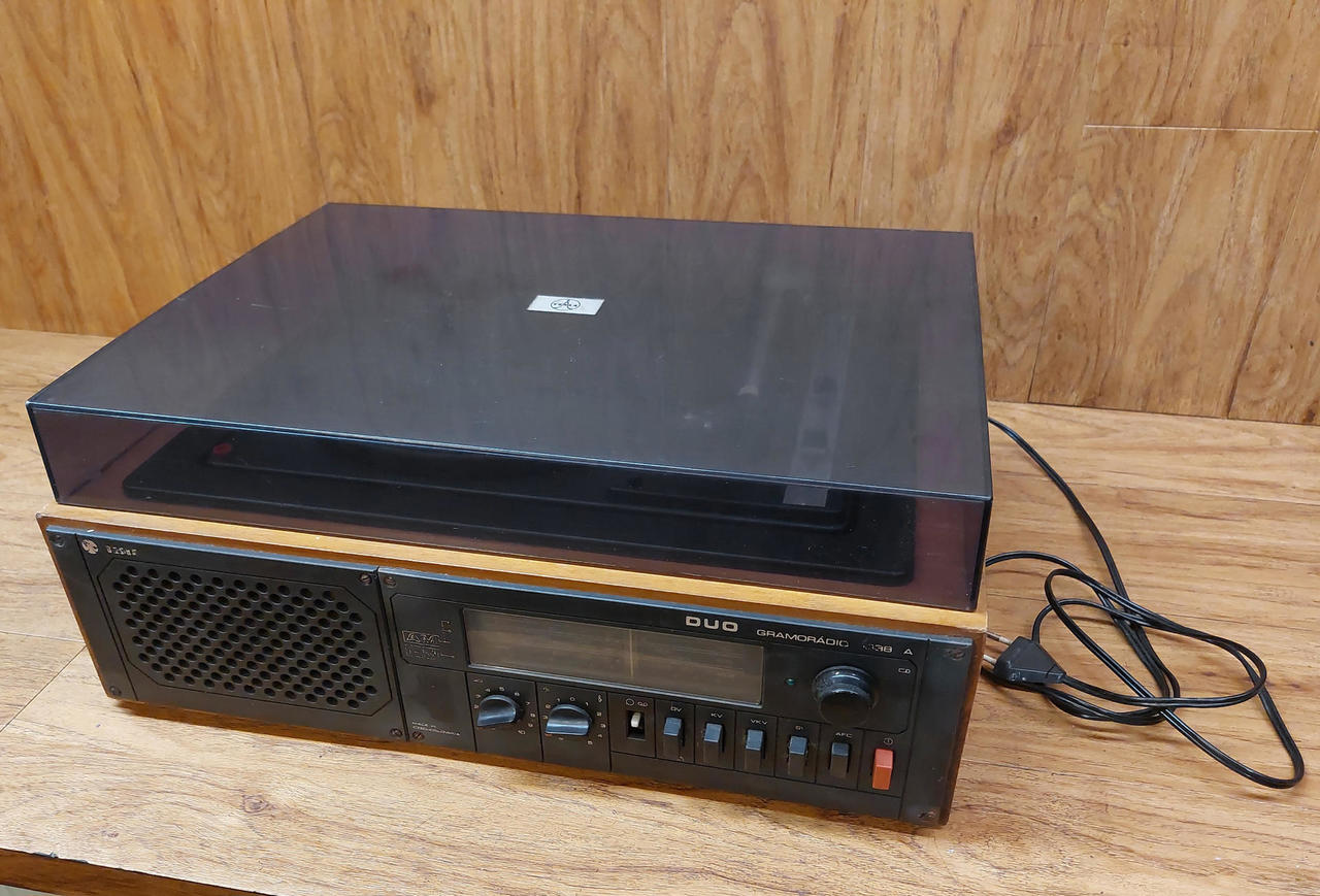 Nabízím dvě gramorádia Tesla Duo 1038A. Vlevo (šedá šňůra) - technicky je v pořádku, zesilovač funkční, potenciometry vyčištěné, rádio svítí a ladí, talíř se točí na obě rychlosti, řemínek je v kondici, vzhledově v podstatě žádné vady ale bude ovšem nutné koupit a přepájet novou přenosku - gramofon hraje ale při plné hlasitosti velmi potichu, typický projev kdy přenoska odchází stářím a už neudělá potřebné napětí. Model přenosky VB4301 (náhrada VK4302). Vpravo (černá šňůra) - v horším stavu, netočí se plotýnka, tlačítka chodí hůře a chybí krytka, bude vhodný spíše na díly. Cena za oba. Možné vyzkoušení a osobní předání Městec Králové nebo nadrozměrné DPD po platbě předem (+250Kč)