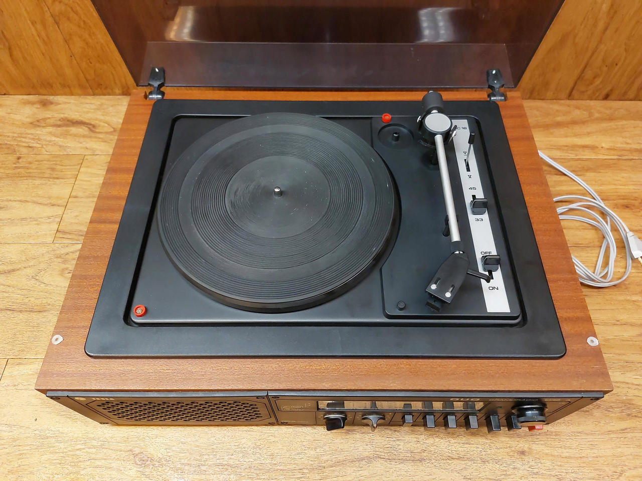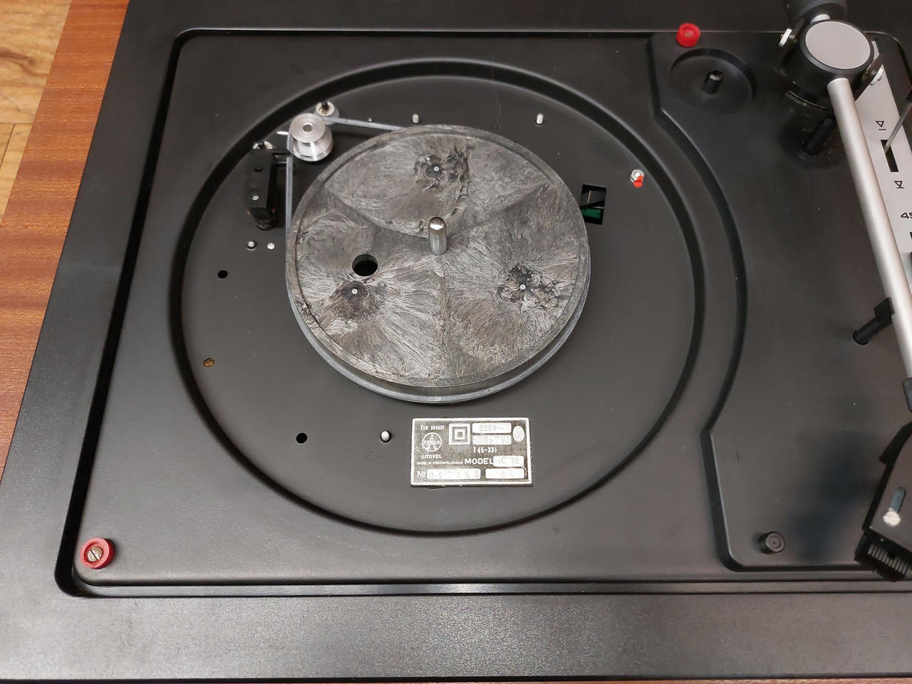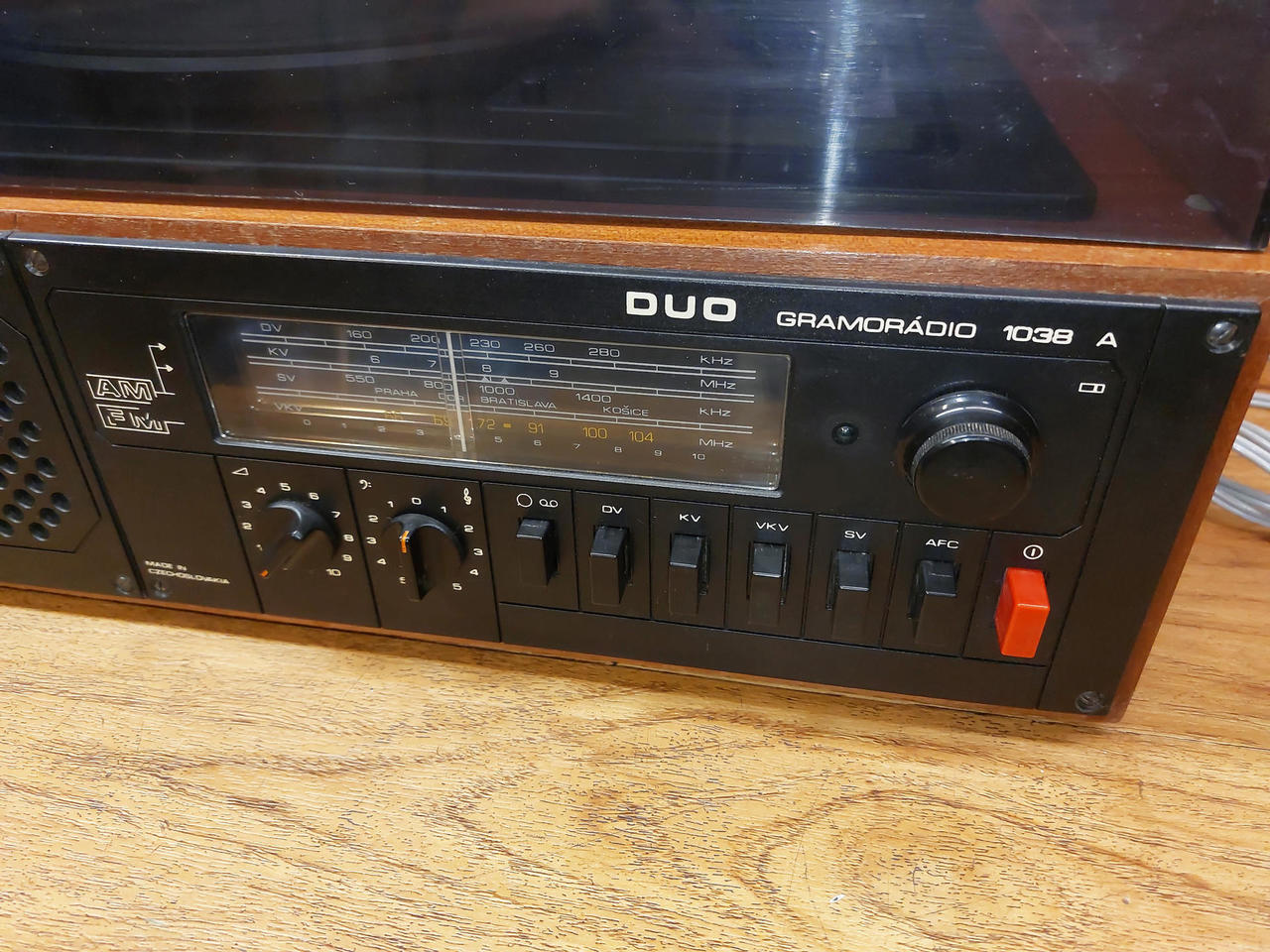 Nabízím dvě gramorádia Tesla Duo 1038A. Vlevo (šedá šňůra) - technicky je v pořádku, zesilovač funkční, potenciometry vyčištěné, rádio svítí a ladí, talíř se točí na obě rychlosti, řemínek je v kondici, vzhledově v podstatě žádné vady ale bude ovšem nutné koupit a přepájet novou přenosku - gramofon hraje ale při plné hlasitosti velmi potichu, typický projev kdy přenoska odchází stářím a už neudělá potřebné napětí. Model přenosky VB4301 (náhrada VK4302). Vpravo (černá šňůra) - v horším stavu, netočí se plotýnka, tlačítka chodí hůře a chybí krytka, bude vhodný spíše na díly. Cena za oba. Možné vyzkoušení a osobní předání Městec Králové nebo nadrozměrné DPD po platbě předem (+250Kč)
