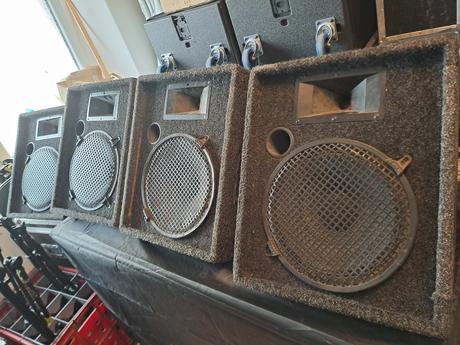 Osazeno 12 eminence 300w, 1" tonsil. Boxy osazeny speakony a madlem. Všechny funkční. Cena za kus. Prodej komplet. Osobní odběr.