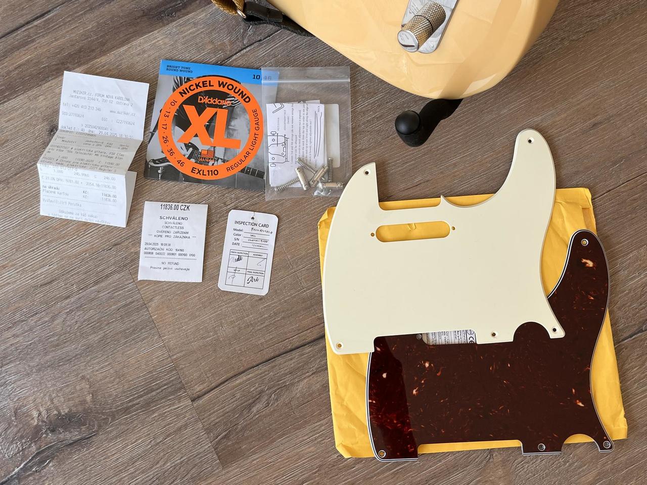 Zdravíčko, prodám tuhle vzácnou limitku, která už před rokem nebyla k sehnání jak v ČR tak na evropském trhu. Zakoupena jako poslední oficiálně dostupný kus. Limitka spočívá ve VINTAGE BLONDE provedení. Váha: cca 3,9kg (na mě již těžká, někdo to však ocení) Provedené úpravy: + brass compensated sedla zn. wilkinson + vystínovaný vnitřek kytary + místo pružin pod snímači rubber tubes + struny ddario exl110 + nový 3ply pickguard s černou vrstvou uprostřed Ke kytaře přidávám: - 2 další kompatibilní pickguardy - původní sedla - účtenku (pro případnou reklamaci/servis u muzikeru) Důvod prodeje: redukuji svou sbírku a zároveň ačkoliv mám tento kus velice rád, je to jedna z těch těžších kytar a osobně se mi lépe hraje na lehčí nástroje. Bezpečné balení kytary pro odeslání je samozřejmostí