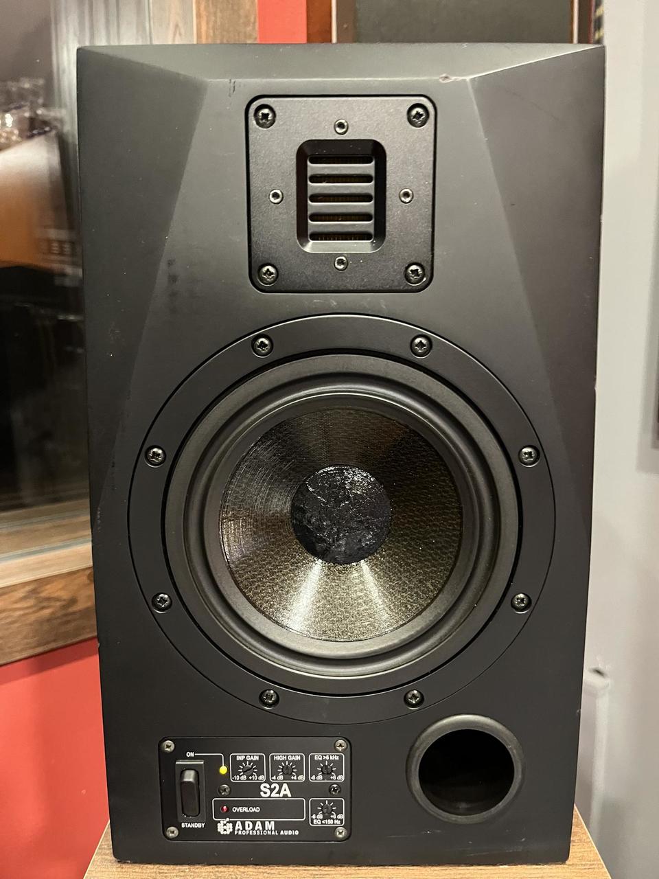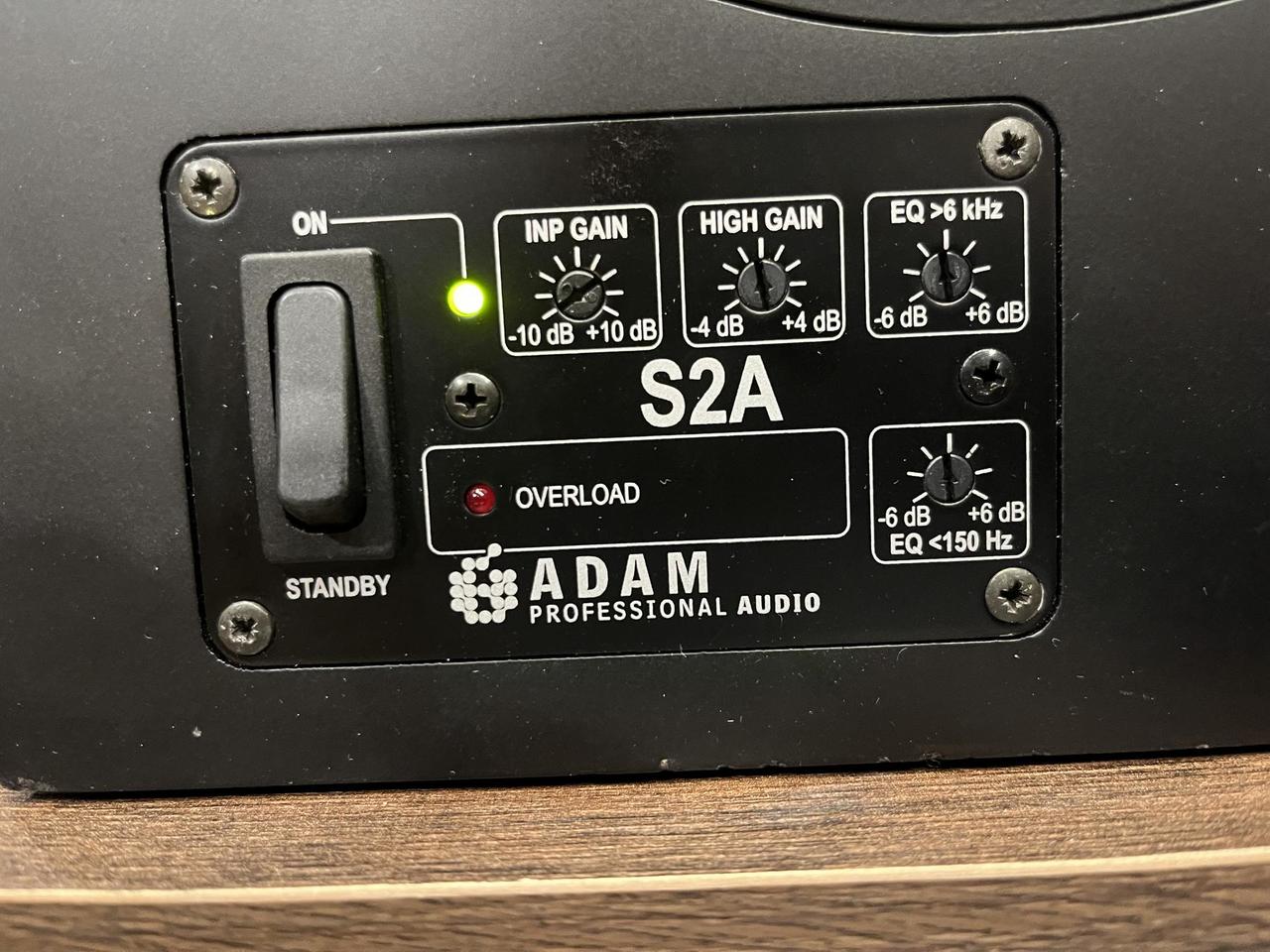 ADAM Audio S2A je profesionální dvoupásmový aktivní studiový monitor, který využívá technologii páskového výškového reproduktoru (ART) pro detailní přednes výšek a HexaCone woofer pro přesné basy. Technické parametry Výškový reproduktor: Páskový A.R.T. (Accelerated Ribbon Technology). Basový reproduktor: 7,5" (186 mm) HexaCone (Kevlar/Nomex sendvič). Frekvenční rozsah: 35 Hz – 35 kHz (±3 dB). Zesilovače: Bi-amp design, 2x 150 W RMS (celkem 300 W). Dělící frekvence: 1,8 kHz. Max. akustický tlak (SPL): ≥108 dB na 1 m. Zkreslení (THD): < 0,6 % (nad 80 Hz). Ovládání a konektivita Vstupy: Symetrický XLR. Přední panel: Standby přepínač a otočný ovladač vstupní citlivosti. Zadní panel: Ovladač zisku výškového reproduktoru (±4 dB) a dva filtry pro místnost (Room EQ) – High Shelf (>6 kHz) a Low Shelf (<150 Hz). Konstrukce a rozměry Typ ozvučnice: Bassreflex (přední port). Rozměry (Š x V x H): 220 x 370 x 320 mm. Hmotnost: Cca 13 kg. Stínění: Magneticky stíněné