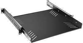 19" racková polica, 1U, s policovými pojazdmi.