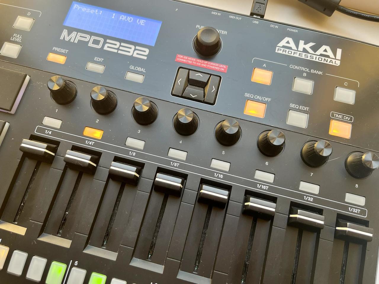 Prodám MIDI kontroler Akai MPD 232. Minimálně používaný pro ovládání světel. Už nemám krabici. Platba předem na účet, Zásilkovna. Ne dobírka.