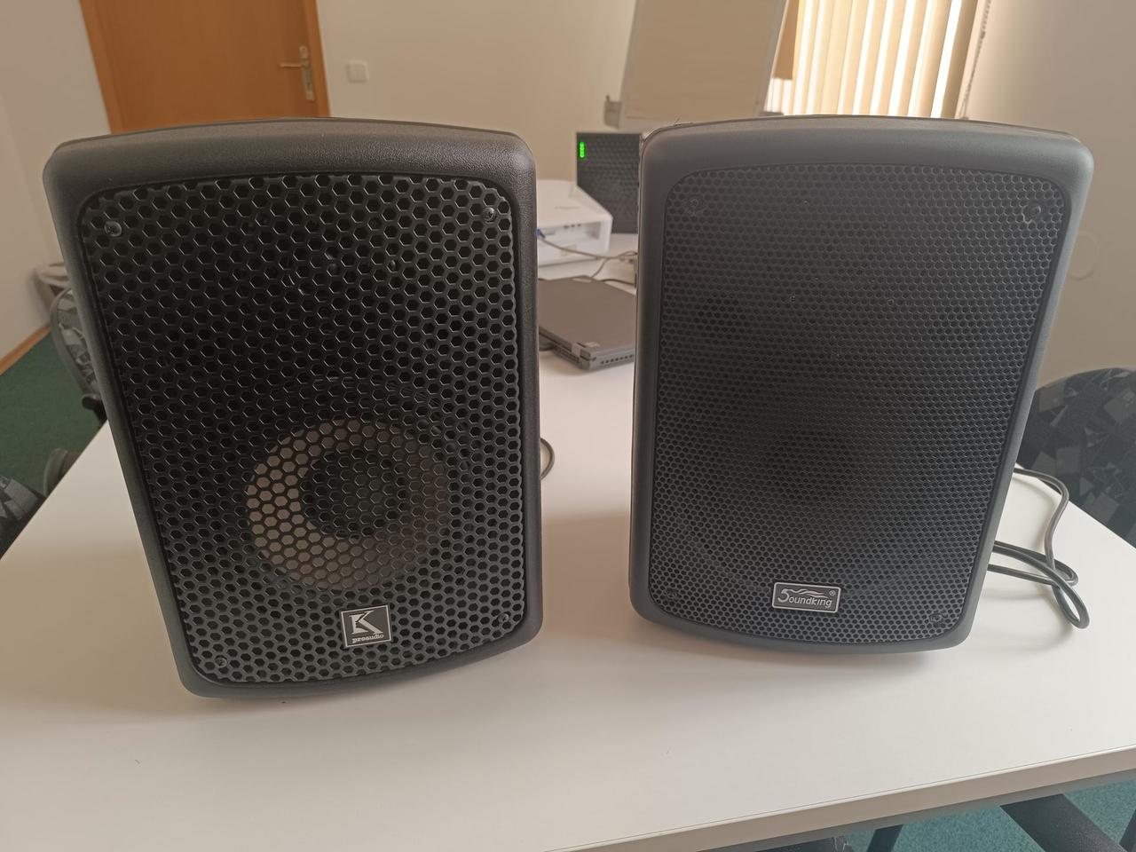 Prodám 2x2 aktivní reproduktory 80W. Oba typy jsou prakticky shodné. Jeden pár SoundKing (z Muzikeru), druhý Kaifat (z Kytary). Byly v použité v restauraci a nahrazeny instalačním systémem.