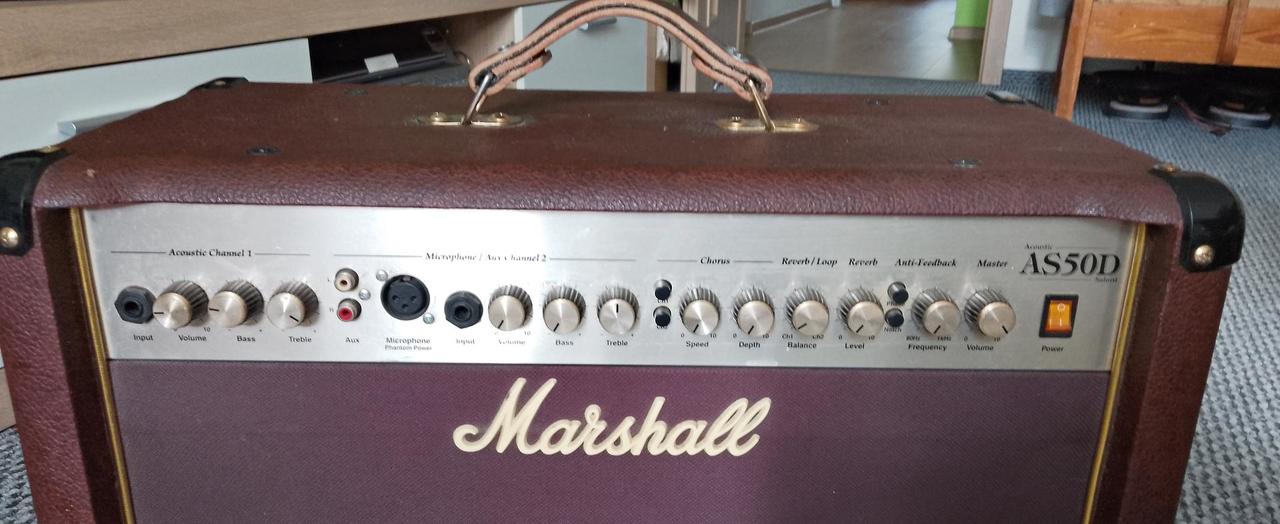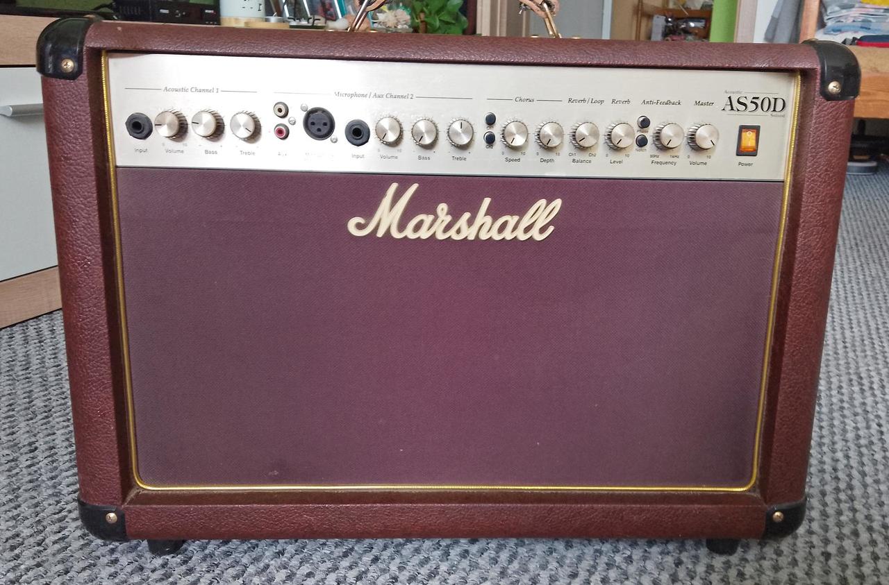 Prodám akutické kombo Marshall AS 50 D. Výkon 50W, 2x8“ repro, 2 kanály, Reverb, Chorus…. Parametry jsou snadno k nalezení na Netu.