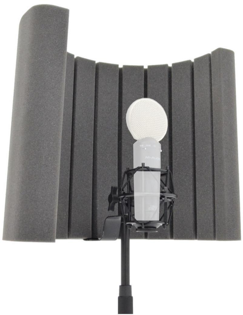 Lehký, přenosný, snadno sestavitelný mikrofonový prostor s polyuretanovou strukturou, který je navržen tak, aby poskytoval maximální absorpci, perfektní řešení pro hlasový záznam v neošetřených místech nebo místnostech s nedostatečnou akustickou kontrolou. Nabízí duální funkčnost, pohlcuje energii hlasu uvnitř a poskytuje méně okolního zvuku a částečně pohlcuje rozptýlené odrazy místnosti na vnější straně. Jeho struktura akustické pěny má optimální hustotu a tloušťku a používá řadu dutin k posílení absorpčního účinku a přidání strukturální podpory kloubovému mechanismu. Produkt je vhodný pro použití s celou řadou mikrofonů a lze jej nastavit vertikálně nebo horizontálně. Rozměry: 200 x 300 x 400 mm. Hmotnost: 830 g.