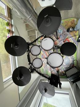 Prodám elektronickou soupravu Alesis Crimson II se síťovanými blánami, které nabízejí velmi přirozený pocit z hraní. Bicí jsou ideální na doma – nedělají hluk a zabírají málo místa.