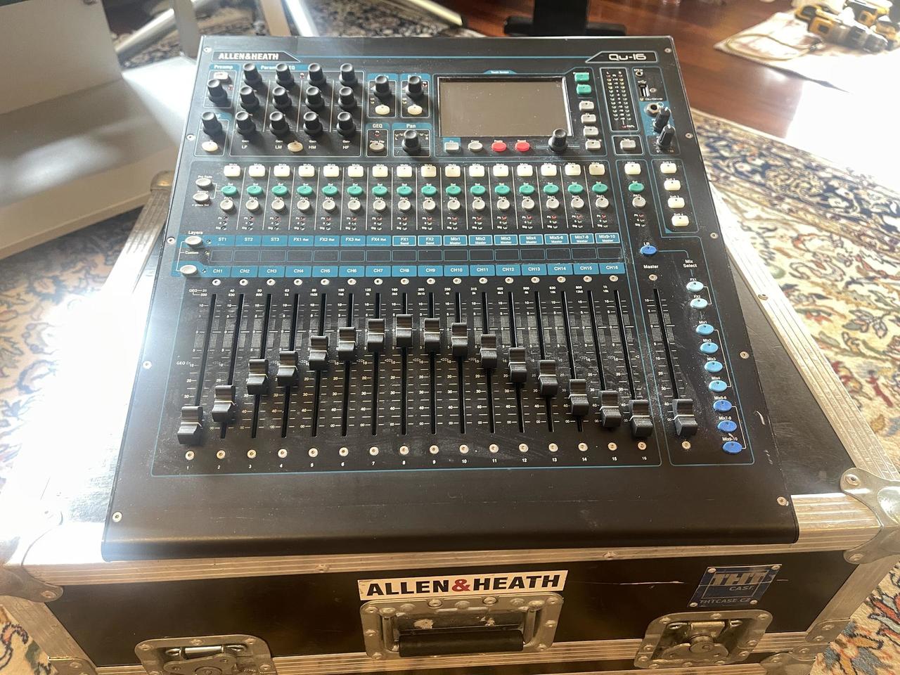 Mix pult AllenHeat QU 16 , motorove fadery , hrany pouze v domacim studiu plus + Profi rack na miru