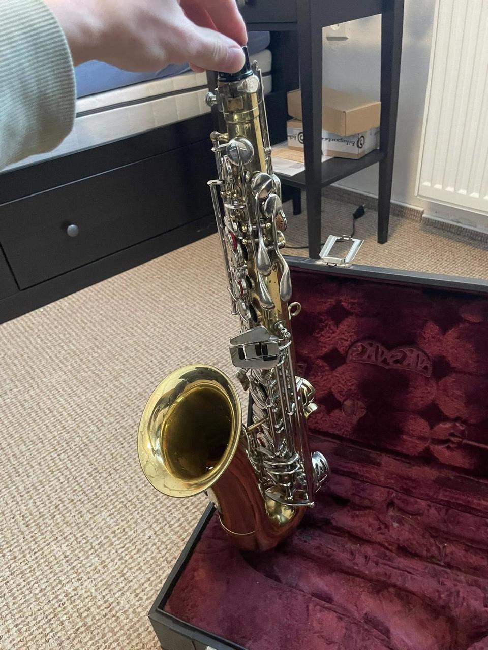 Prodám alt saxofon zn. Kohlert, výroba 1938, takže vyhraný nástroj. K saxofonu je hubice Meyer (USA) BA-2 M7M. BG ligatura, polštářek na hubičku, vytěrák (hubice i sax), plastový plátek Légére 2,00.