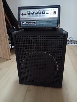 Prodám tuto malou basovou sestavu. Vše v naprostém pořádku. Zesilovač Ampeg micro-VR 200/150W, 1. majitel, cena: 5000,-Kč. Box 250W dělaný (truhlář), rozměry 51x41x33 cm, překližka, repro Eminence Deltalite 2512 8 ohm (P.C. 5000,- Kč), tweeter Eminence APT 80 (P.C. 1200,-), cena za box: 4000,- Kč. Cena za komplet: 8500,- Kč. Přidám koženkový obal a propojovací kabel.