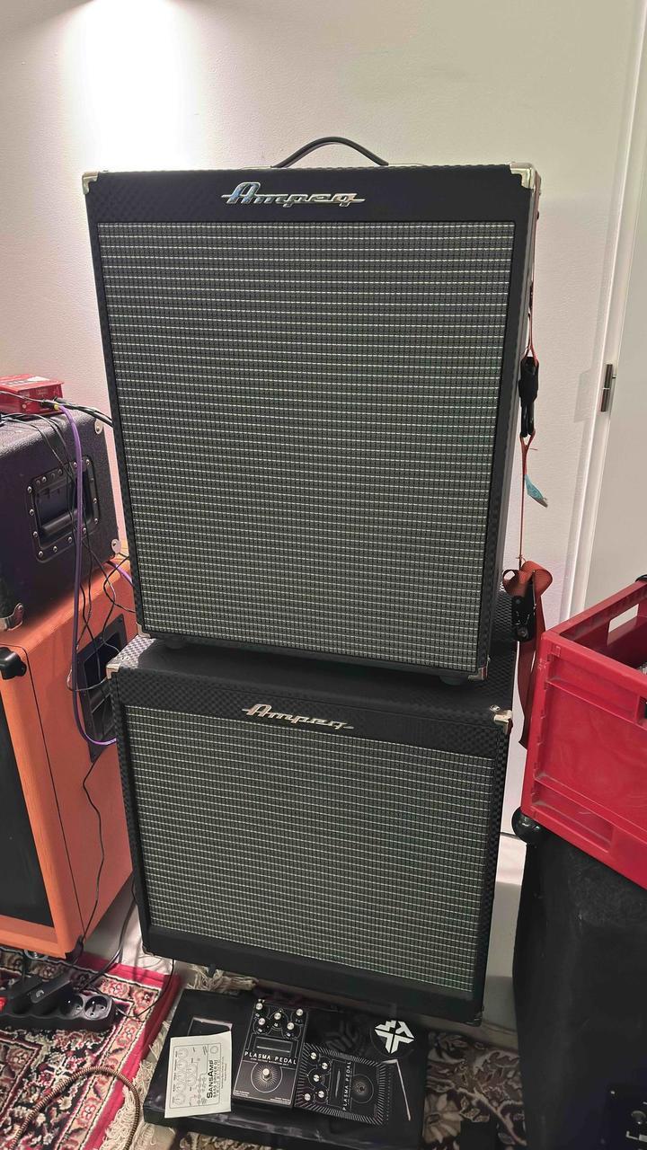 Prodám kompletní baskytarovou aparaturu Ampeg ve výborném stavu.