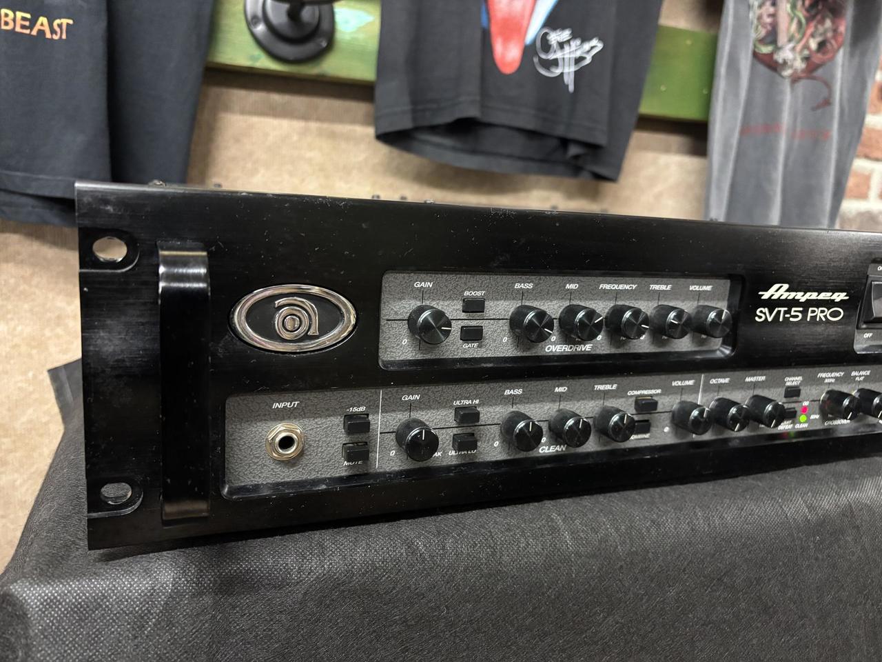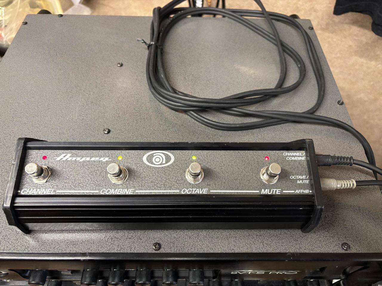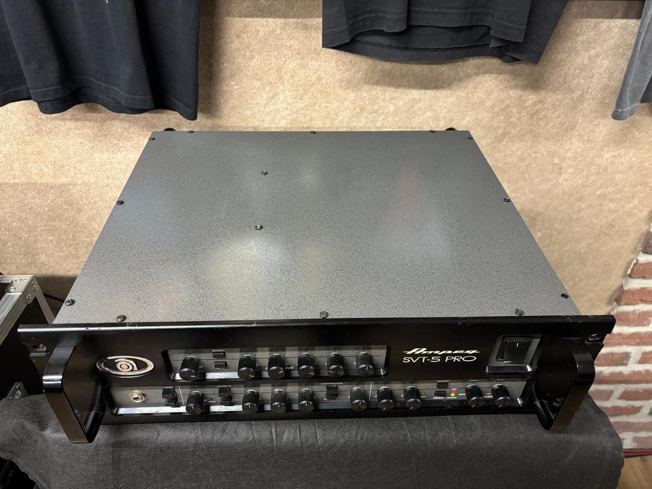 Ampeg SVT-5 PRO 1000 Watt, dvoj kanalovy basovy zsilovac. Made in USA Robustne a kvalitne vyrobena hlava, v profi ultimatnej kvalite, elektronka v preampe s Mosfetovym koncovym stupnom. Cisty a skresleny kanal, su medzi sebou kombinovatelne a aj sucastne hrajuce, co zamedzi straty basoveho spodku pri skreslenom zvuku. Dalej ma plynule nastavitelny Comp a Octaver s moznostou plynuleho primixovania ku zakladnemu tonu. Sucastou je aj original AFP-4 footswitch s origo prepajacou dvojicou kablov. V 100% technickom ale aj optickom stave, vid foto, prakticky v takomto stave na trhu nezohnatelny. Viacej technickych informacii o vykone v zapojeni Bridge, 2x mono, stereo a Bi-Amp, najdete v prekliku na odkaze. Doprava do CR nie je problem.