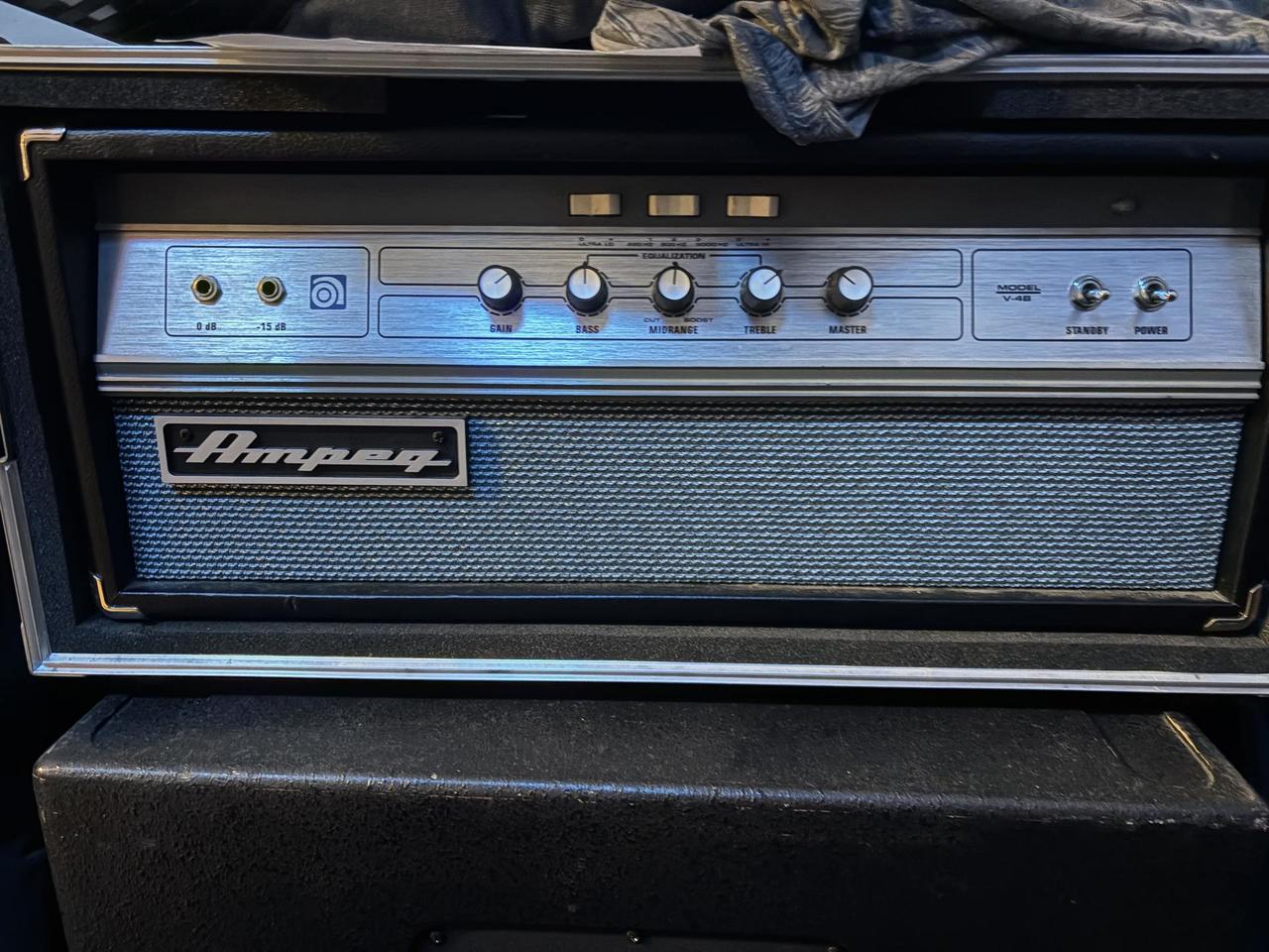 Zosilnovac Ampeg v4b 100w v top stave + case Bedna Ampeg PN 410. Fyzicky ma cosi za sebou. Oderky od prenasania a vozenia v dodavke ale zvukovo bezchybna Vykon mi postacoval na kazde podium ci uz v kluboch alebo na motozrazoch Predavam z dovodu ze som presiel na digital + in ear. A je skoda aby tato skvela zostava len tak stala v skusobni nevyuzita