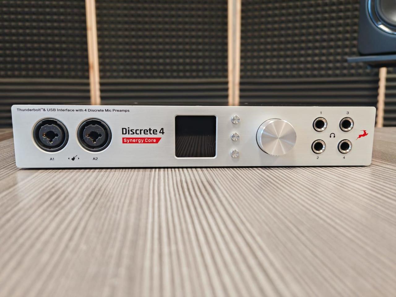 Antelope Discrete 4 Synergy Core je unikátní Thunderbolt/USB zvuková karta, Čytřkanálová zvuková karta disponuje výkonnými mikrofonními preampy dosahující světové kvality.Dostanete se s latencí hluboko pod 1 ms. Mám ji ve studiu 5 let. Stav jako nová, bez škrábnutí. Kupuji vyšší řadu Antelope. Více info na 725 739 046, nebo outlow@seznam.cz komplet info na https://en.antelopeaudio.com/