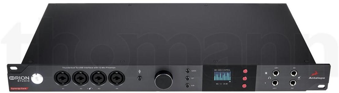 Antelope Orion Studio Synergy Core. 12 mikrofonnich vstupu primo na kartě. Vyborny stav, po celou dobu v racku ve studiu. Je to i s uctem kde jsou jsou dokupovane real time pluginy. Vice info v odkaze.