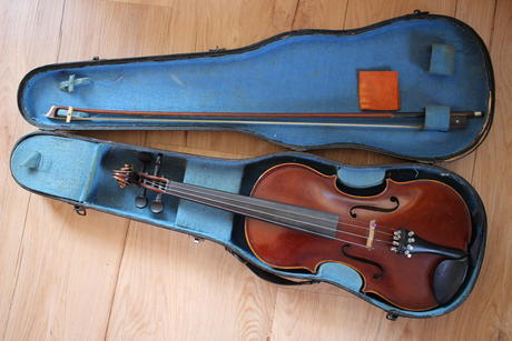 Staré pěkné housle značené vevnitř Antonius Stradivarius Cremonensis - Faciebat anno 1721, od Josefa Lídla z První české továrny hudebních nástrojů na Moravě (Brno, Zelný trh), původní stav s jednou prasklinou včetně značeného smyčce, krásně žíhané, uloženy v původním kufříku. Vše viz foto.