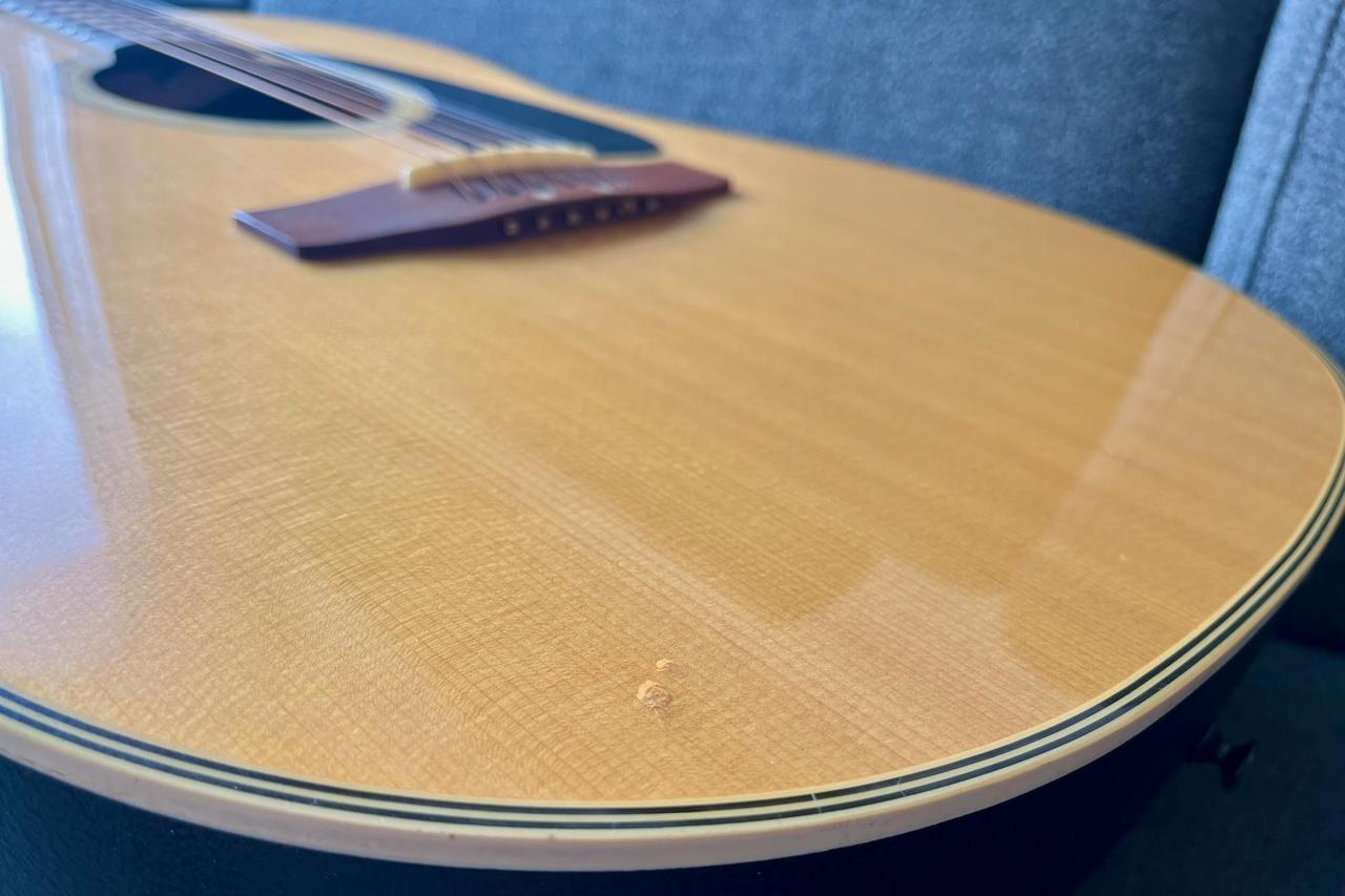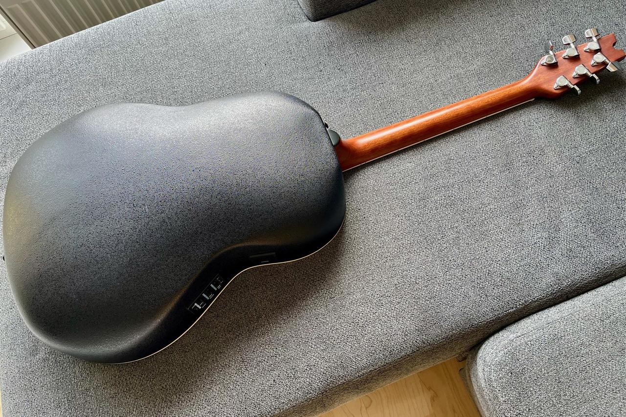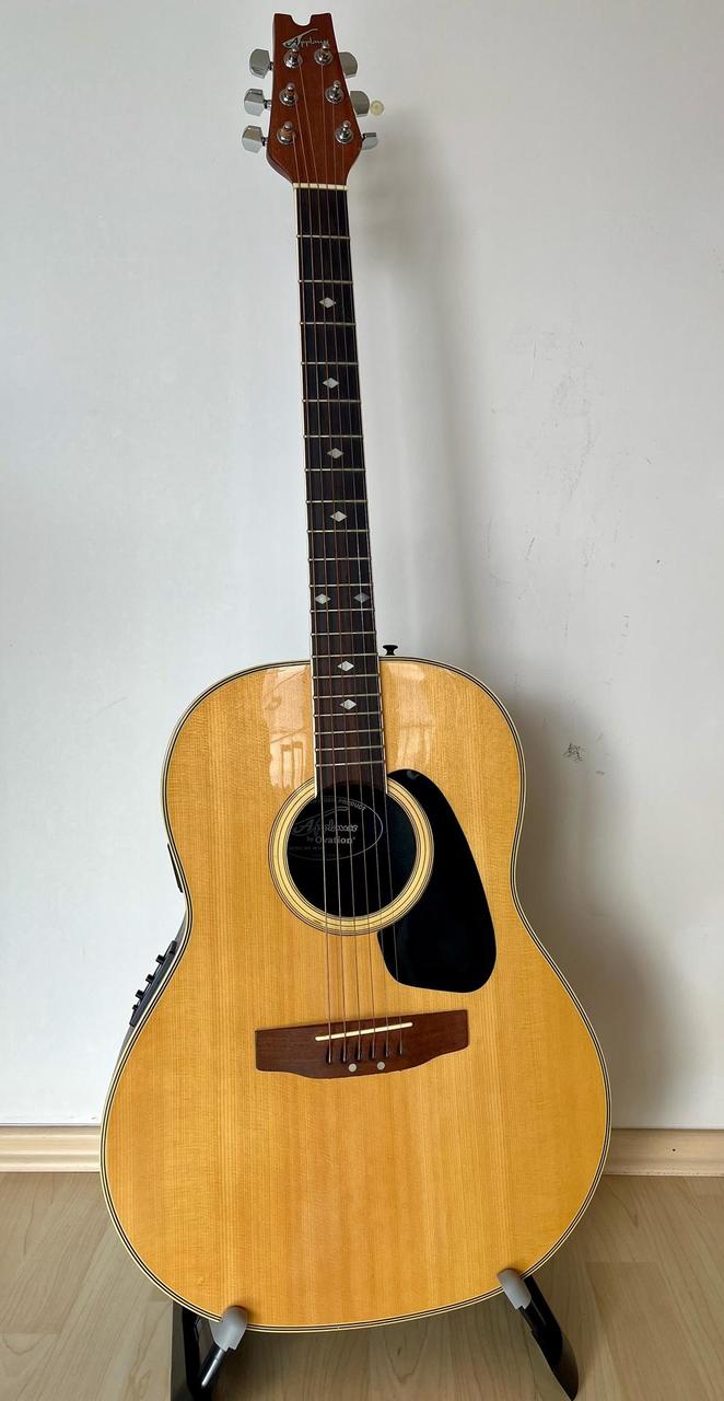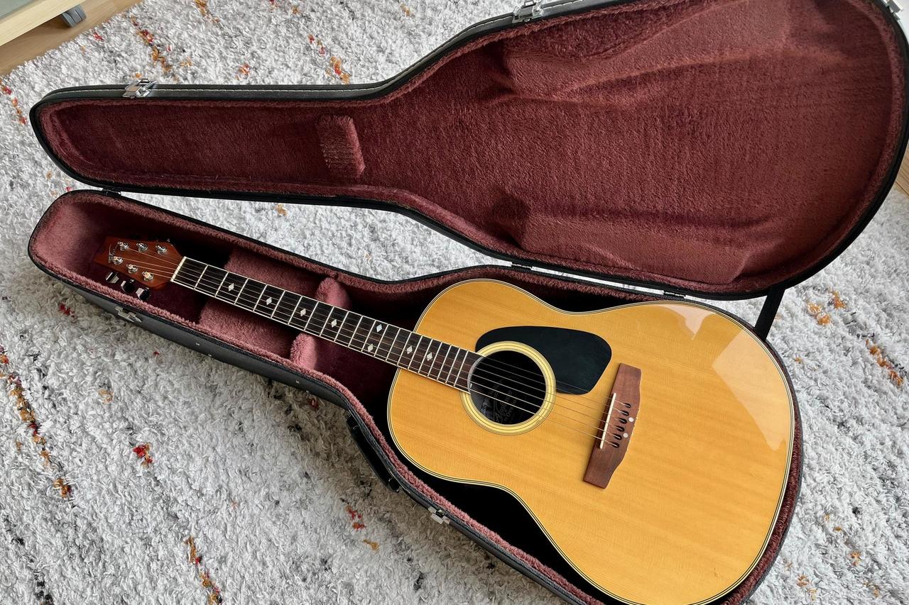 Kytara má vestavěnou elektroniku s piezo snímačem a 2pásmovým EQ. Vše funkční. Tělo typu dreadnought (bez cutaway), natural finish, velmi dobrý stav. (Drobné oděrky viz fotografie.) Součástí je původní pevný kufr. Ideální jako záložní nástroj, do zkušebny, nebo i pro živé hraní. Úzký krk je super na dlouhé pohodlné hraní, zvláště pro hráče na elektrickou kytaru. Jsem první a jediný majitel. Zakoupena v PMC v Soukenické, nejspíše v roce 1994. Sloužila moc dobře, nyní nevyužiji. Do hospody a k ohni nesměla, na to mám obyčejná pádla a na vystupování mám už nový nástroj od Furcha. Lokalita: Praha Letňany Materiály a konstrukce: - co mi našla A.I., takže bez záruky: Vrchní deska (top): smrk (spruce, laminovaný) Zadní díl a luby (backs & sides): černý kompozitní materiál (Lyrachord-styl / plastový bowl-efekt) Krk: pravděpodobně nato / mahagon (na základě katalogů podobných modelů) Hmatník: ovangkol / rosewood-podobný materiál