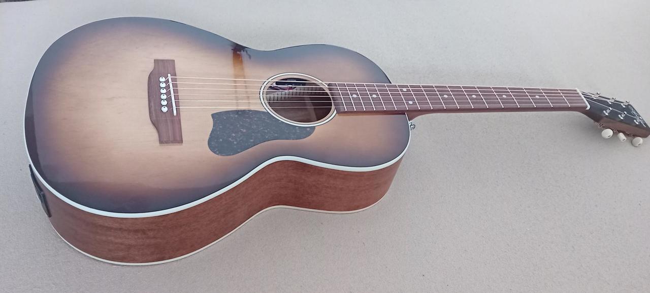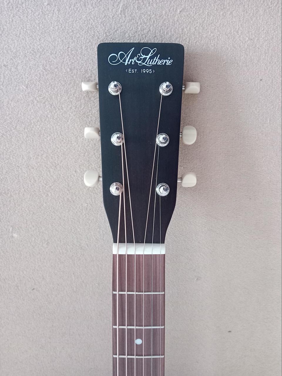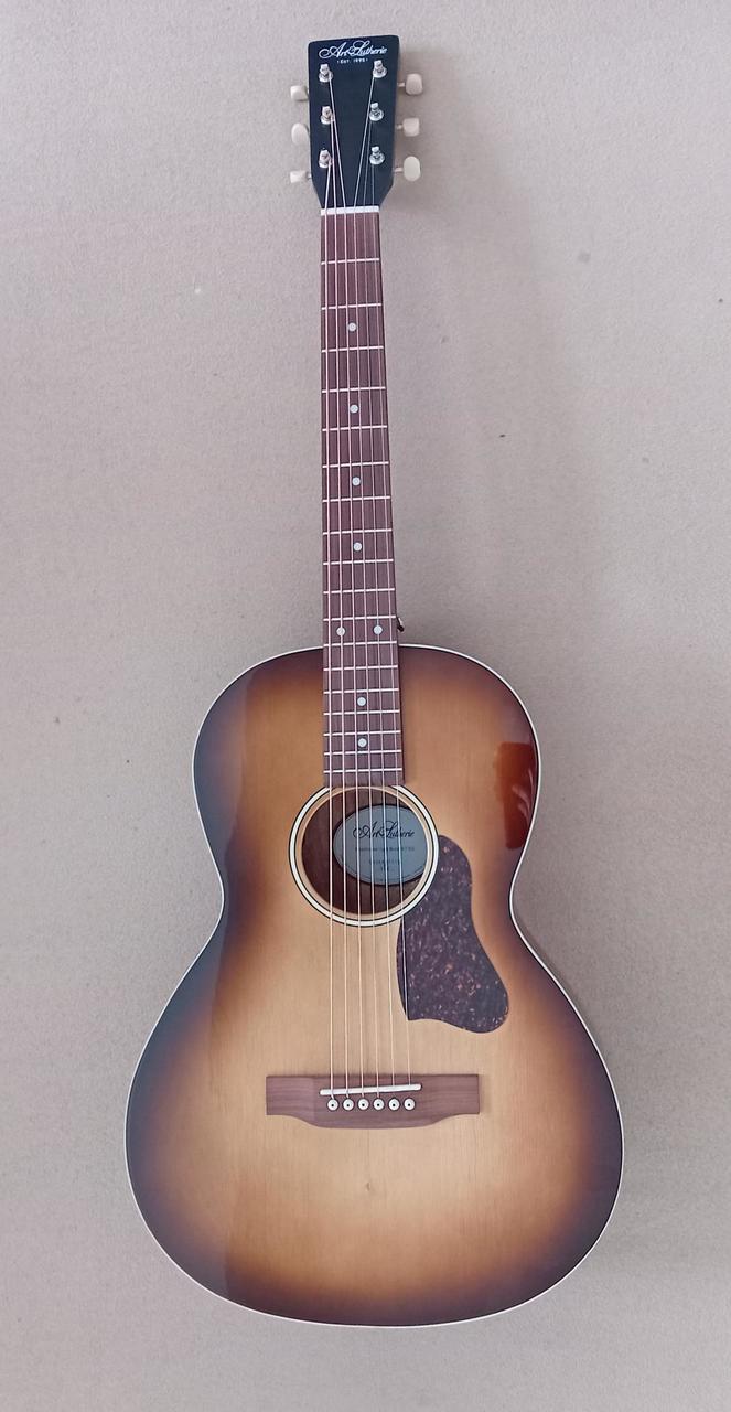 Prodám skvělou elektroakustickou kytaru typu Parlor Art & Lutherie Roadhouse Light Burst GT EQ. Možnost ozvučení nabízí podkobylkový piezo snímač a předzesilovač Fishman Sonitone s ovladači Volume a Tone v ozvučnicovém otvoru kytary.