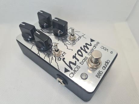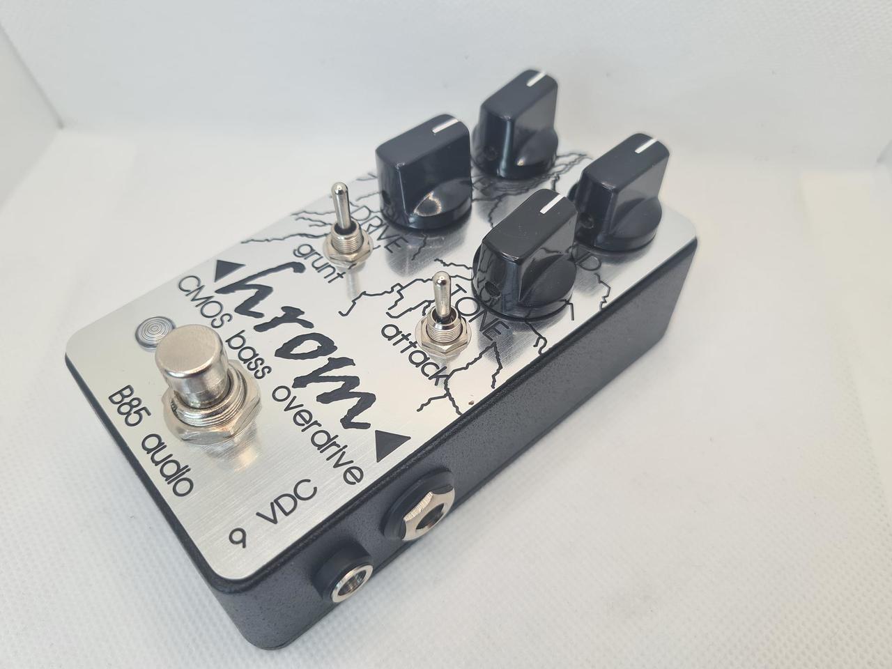 B85 audio Hrom je podlahový efekt postavený na CMOS čipu CD4049UBE na němž jsou postaveny analogové overdrivery od renomovaných výrobců jako například Darkglass B3K, Darkglass Vintage atd....Tento efekt vychází z mého Bass overdrive s přidanou tónovou clonou a pár menšími úpravami. Je navržen tak aby i při maximálním zkreslení byl stále dobře čitelný a vyzněly všechny frekvence. Overdrive má klasiké ovládání LEVEL pro nastavení hlasitosti, DRIVE pro nastavení zkreslení , BLEND pro nastavení poměru mezi čistým a zkesleným signálem, TONE pro nastavení tónu a třípolohové přepínače ATTACK a GRUNT, kterými nezávisle nastavíš míru saturace basových i vysokých frekvencí. Z toho vyplívá že efekt je velmi univerzální do mnoha stylů. Celý efekt je ručně vyroben a to se týká i desky plošných spojů.