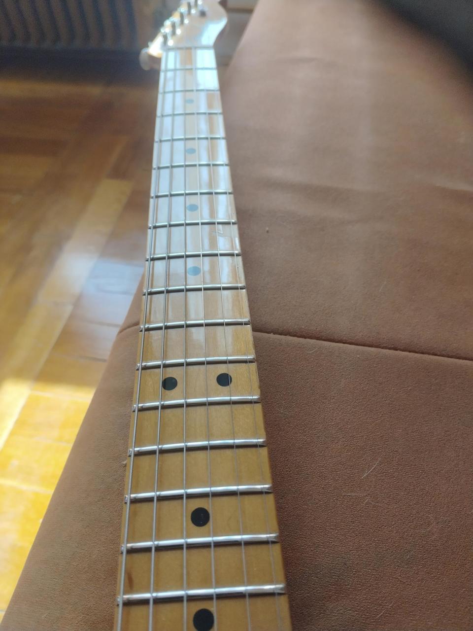 Hlavní specifikace a snímače: Snímač u krku: Fender Custom Shop "Twisted" Tele – poskytuje jasnější, téměř „stratovský“ tón, který je u Telecasterů velmi oblíbený pro svou čistotu. Snímač u kobylky: Fender Custom Shop Broadcaster – klasický, úderný Telecaster sound s pořádnou dávkou „twangu“. Krk: Masivní javorový krk s profilem Soft "V", který skvěle padne do ruky a je jedním z nejlépe hodnocených prvků tohoto modelu. Tělo: Jasan (Ash), což zajišťuje výbornou rezonanci a tradiční vzhled. Váha 4-4,10kg Elektronika: Původní 4polohový přepínač byl vyměněn za standardní 3polohový. Snímače i zbytek elektroniky jsou zcela původní a v bezvadném stavu. Pražce: V naprostém pořádku, kytara je seřízená a připravená k okamžitému hraní. Vizuální stav: Nástroj byl přirozeně hraný, což mu dodává autentický charakter a patinu. Žádné poškození, které by ovlivňovalo funkčnost. Kytara je známá tím, že „hraje nad svou cenovou kategorii“ a díky snímačům z Custom Shopu má špičkový zvuk. Osobní odběr,moznost vyzkošení v Děčíně nebo možné zaslat na dobírku v v měkém pouzdru a original tvrdém kartonu od kytary FENDER Proč je tento model cenný? Baja Telecaster z prvních let výroby (2006) je mezi hráči velmi ceněný pro kvalitu zpracování. I když je to mexická výroba, nese označení "Custom Shop Designed" na neckplate (destičce u krku), což potvrzuje jeho výjimečnost.