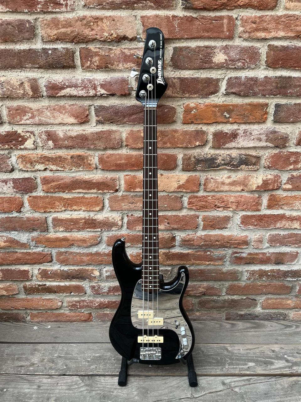 Parádně vyhraná Japonská baskytara Ibanez z roku 1986. Nástroj byl upraven (MOD)-snímače DiMarzio, zrcadlový pickguard. Konfigurace PJ (Precision + Jazz pickup) díky čemuž má basa široký zvukový rozsah – od hutného rockového zvuku až po čitelný slap nebo funk, pohodlný rychlý krk typický pro Ibanez. Basa je plně funkční - stav odpovídá stáří – běžné kosmetické známky používání. Tělo je vyrobeno z lípy a břízy, hmatník z palisandru a krk z javoru. Zbrusu nové struny. Koupeno 2024 na Kytary.cz