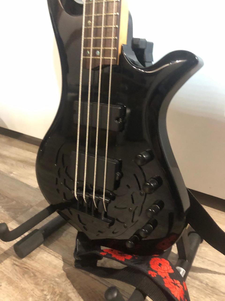 Basa je v perfektním stavu. Je to úžasný nástroj pro začátečníky i pokročilé spíše na metalové a rockové písničky má 24 pražců humbucker na spodní pozici a single coil na horní. Předání osobně nebyl by problém v Praze