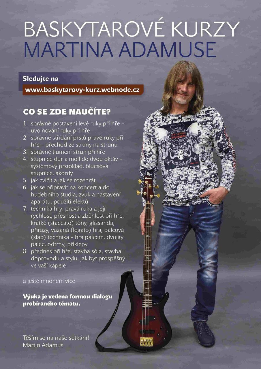 Martin Adamus, autor úspěšné publikace Škola hry na baskytaru a zakladatel edice Baskytarový vesmír, připravil pro vás další týdenní baskytarový kurz - LETNÍ - od 5.7. neděle do sobota 11.7.2026 - Jeseníky, obec Karlovice - pension UKV Karlovice. Majitelé pensionu UKV Karlovice pro vás připravili akční úžasnou cenu: Polopenze: 3 950,- Kč /týdenní pobyt - při úhradě do 30.4.2026 Plná penze: 4 550,- Kč /týdenní pobyt - při úhradě do 30.4.2026 Prosím, v případě zájmu přihlaste se co nejdříve, ať majitelé pensionu ví, kolik nás bude, nejlépe do konce února. Celková uzávěrka je pak 30. dubna. Do emailu napište prosím Baskytarový kurz. Přihlásit se můžete zde, paní Slavíková vám podá další informace ohledně zálohy za ubytování: https://ukv.wbs.cz/Kontakt.html Těším se na vás, určitě to bude nádherný týden plný baskytar! Vezměte si prosím s sebou baskytaru, raději i malé kombo, popruh kabel jack-jack a také publikace Baskytarový vesmír a Škola hry na baskytaru a dobrou náladu! Částka (pořád stejná): 3 600,- Kč + ubytování UKV Karlovice Odkazy pro vás: https://baskytarovy-kurz.webnode.cz/baskytarovy-prazdninovy-kurz/ Český rozhlas: https://www.radioteka.cz/detail/cronoty-638488-martin-adamus-skola-hry-na-baskytaru Co se bude probírat? Vše: Technika hry, baskytarové doprovody, rozbory písní, tvorba baskytarového partu - tak, aby to bylo opravdu muzikální - ani nota navíc - žádné hlouposti, které slyšíme v ČR, hra palcem, harmonie, teorie a vše, o co si sami budete žádat a potřebovat - a to celý TÝDEN !!! Tak tedy 5.7. ve 20:00 začínáme! Těšíme se na vás - Martin Adamus a majitelé pensionu UKV Karlovice! Děkuji. Martin Adamus, zakladatel edice Baskytarový vesmír Vloženo 14.4.2026 13:30 pod č.742094