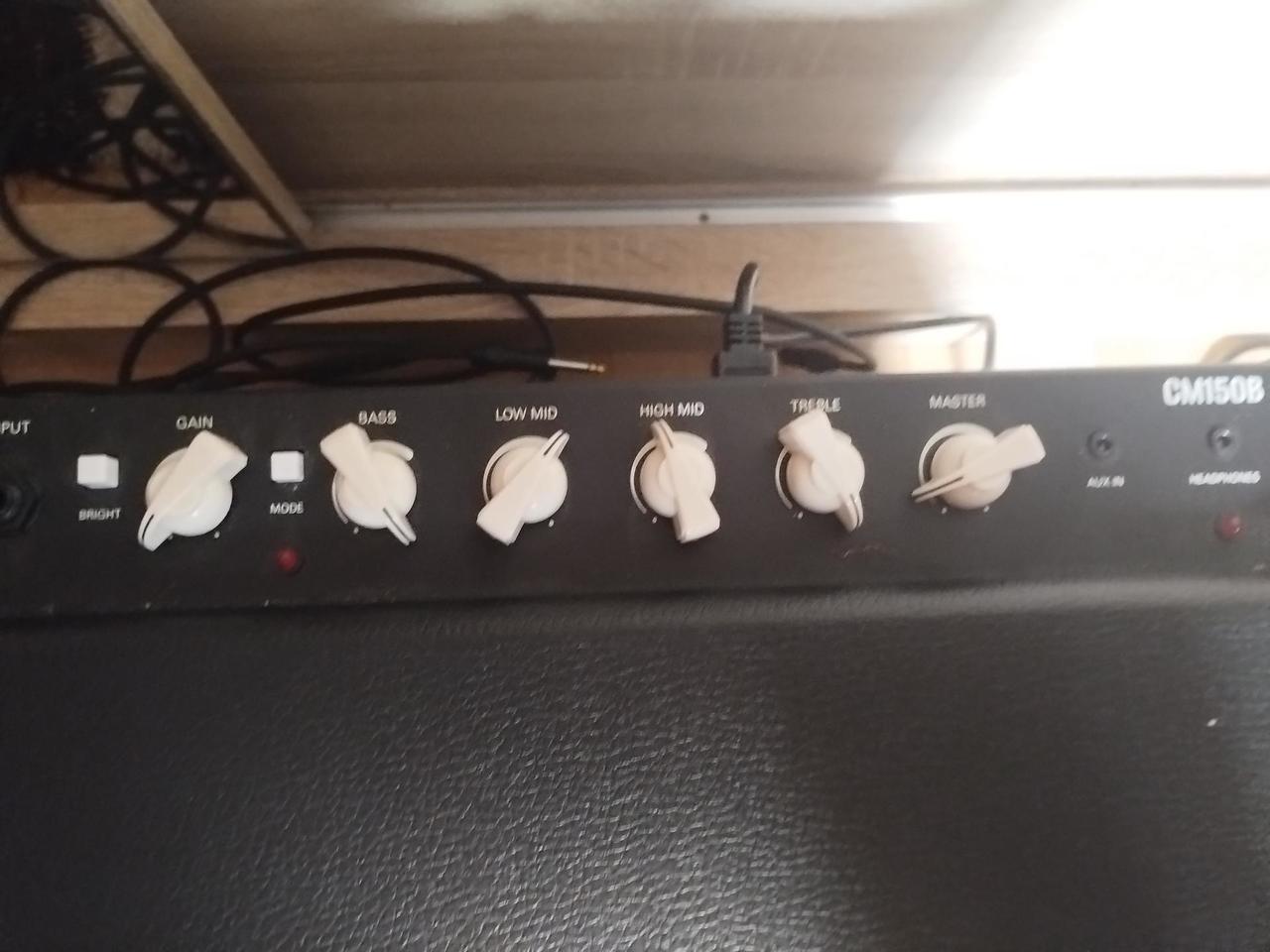 Prodám basové tranzistorové kombo Cort CM150B s výkonem 150 Wattů. Kombo je vybaveno klasickým ovládáním - input pro zapojení baskytary, bright přidá výšky, gain určuje zkreslení, mode přepíná charakter zvuku, bass přidává hluboké tóny, low mid a high mid ovládá spodní a horní středy, treble ovládá výšky a master celkovou hlasitost. AUX in slouží pro poslech z externích zdrojů a headphones pro vyvedení do sluchátek. Kombo funguje velmi dobře a je v dobrém stavu.