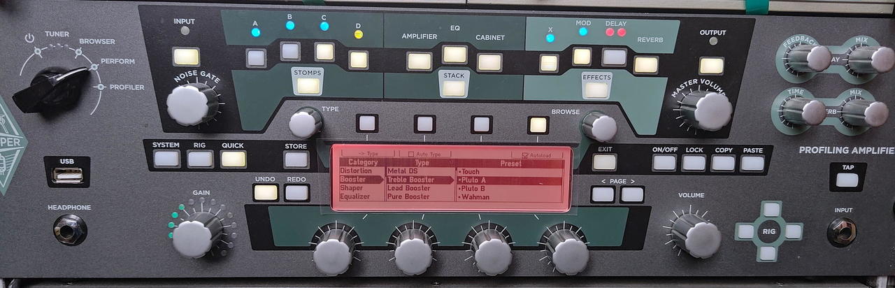 Prodám cca 6 let starý Kemper v rackové verzi se 600W koncovým zesilovačem, včetně MIDI přepínače Behringer.