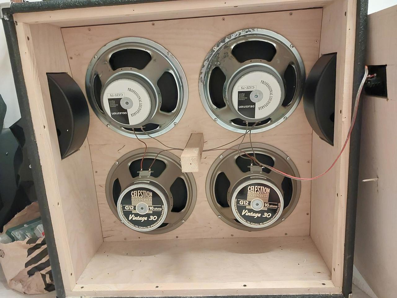 Prodam poctivou preklizkovou zkosenou bednu Rockwell s repro 2x Celestion V30 a 2x Celestion G12t-75 made in England. Bedna je v podstate jen za cenu bazarovych repraku.