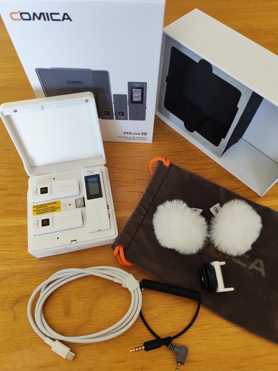 Nový, nepoužívaný bezdrôtový mikrofón pre iPhone do série 14 (port Lightning) , alebo váš fotoaparát s konektorom TRS 3,5 mm. Comica Audio VDLIVE 10 funguje na 2,4 GHz signáli Wi-Fi, vďaka čomu má dosah 50 metrov. Porty pre náročných používateľov. Vysokokvalitný zvuk.