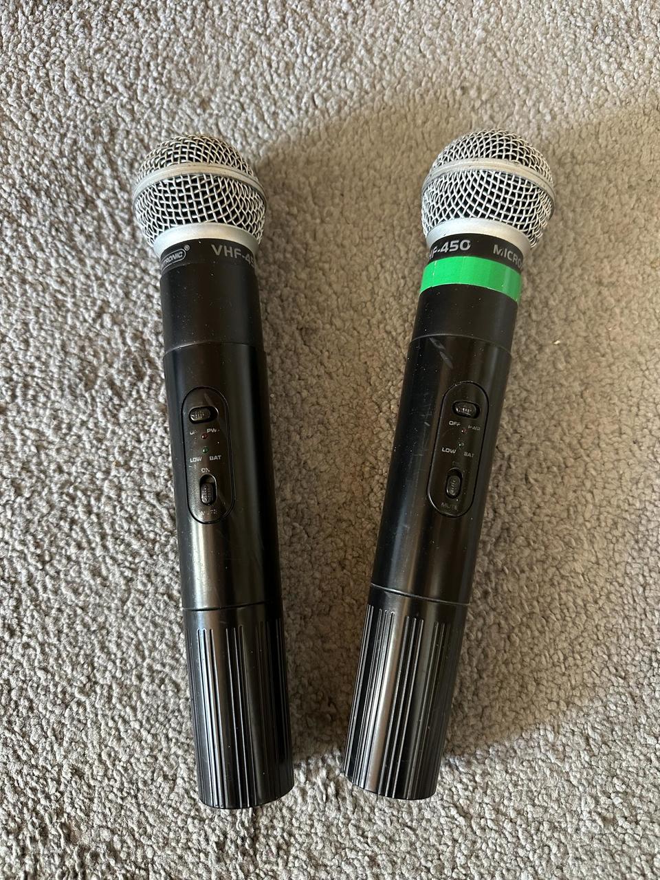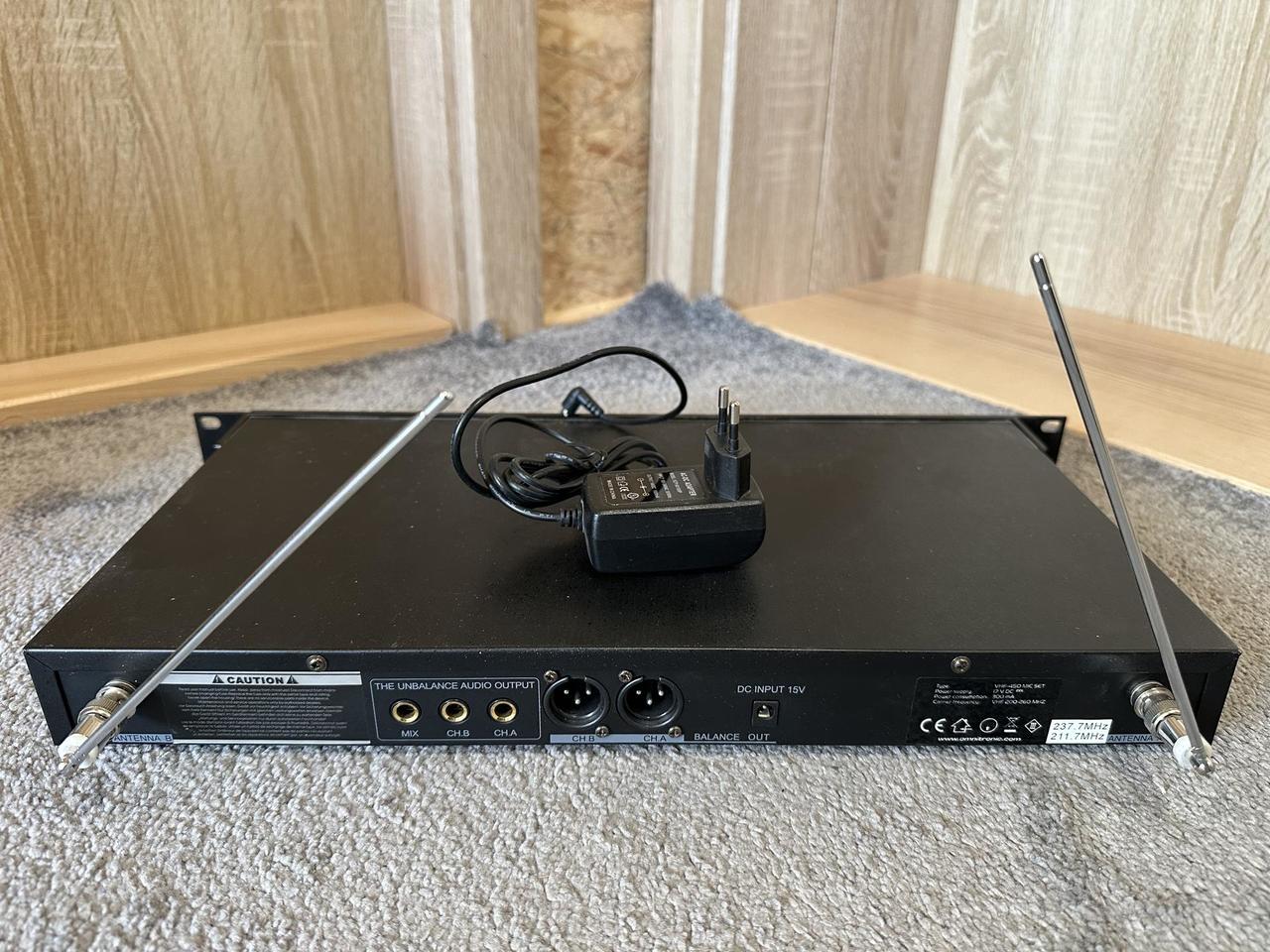 Prodám bezdrátové mikrofony Omnitronic VHF 450. Jedná o set 2 ks bezdrátových mikrofonů na 9V baterie a přijímač s možností umístění do racku. Včetně napájecího adaptéru - viz foto. Vše používané jen v učebně hudební školy; tedy použité, ale jen v nekuřáckém prostředí. Při rychlém jednání domluva možná. Jen osobní předání Brno.