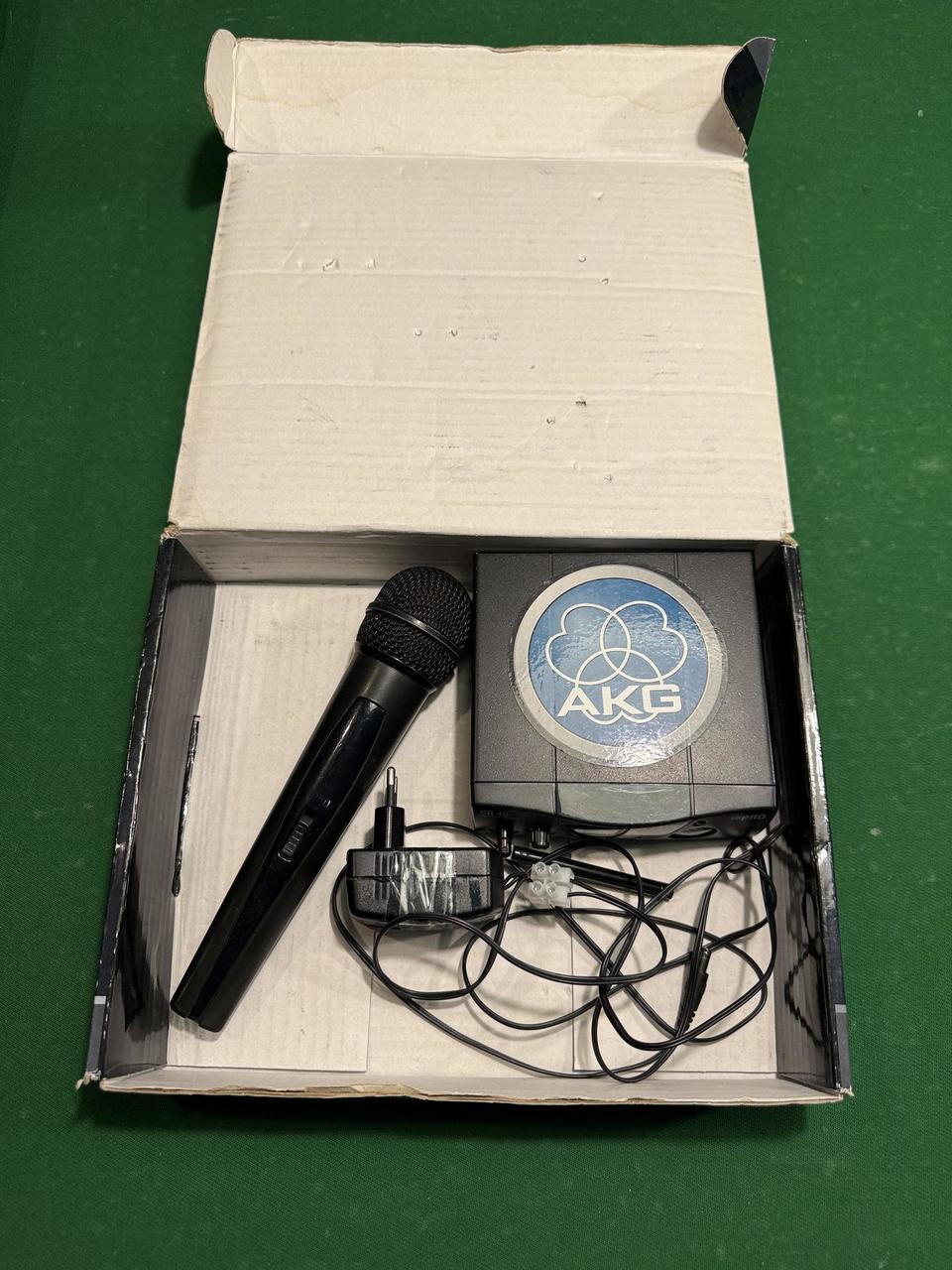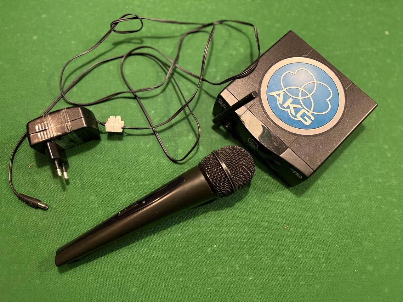 Mikrofon používaný, ale funkční. Součástí je přijímač, krabice a napájecí adaptér (má poškozený kabel spojený svorkovnicí – vhodná drobná oprava). Zohledněno v ceně. Možno osobně nebo poslat.