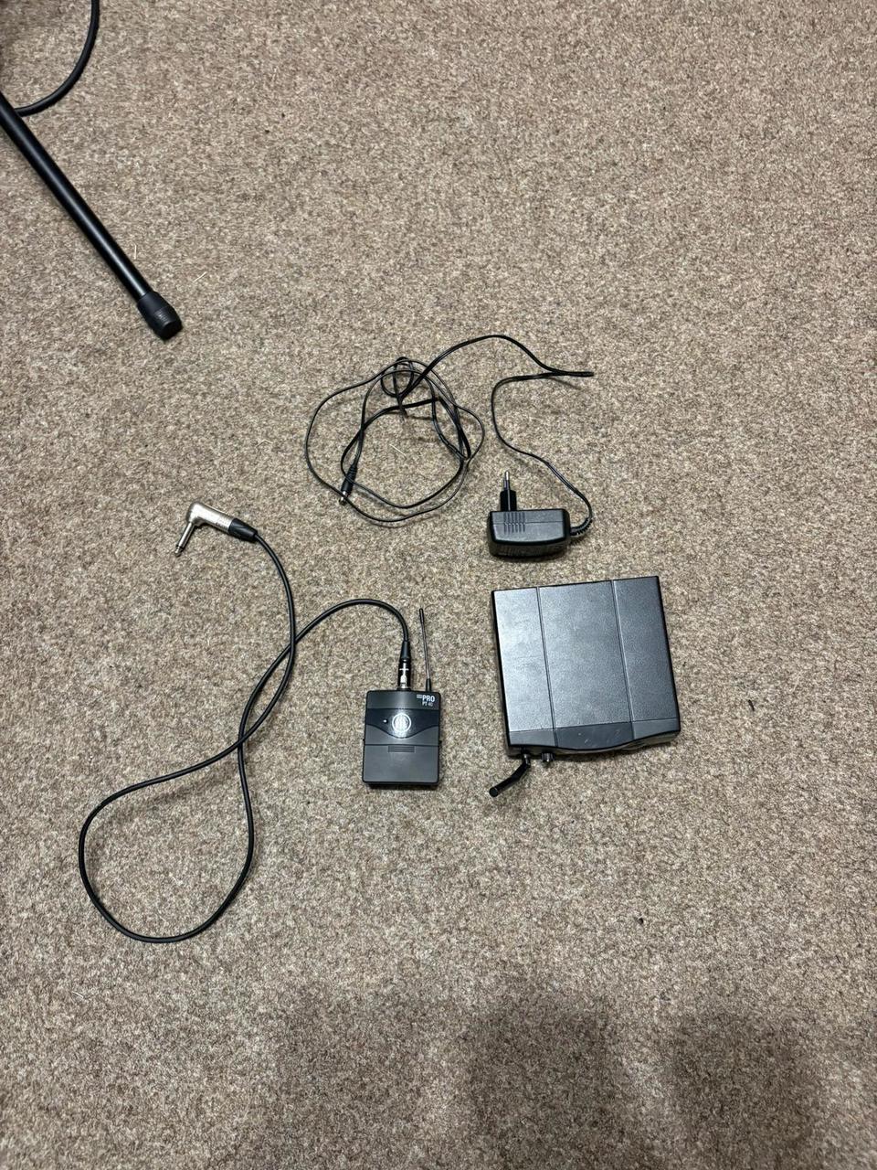 Ahoj, prodám kytarovou vysílačku AKG 40 mini SR. Vysílačka i přes lehce ohlou anténu plně funkční. Doplněno přijímačem i s kabelem.