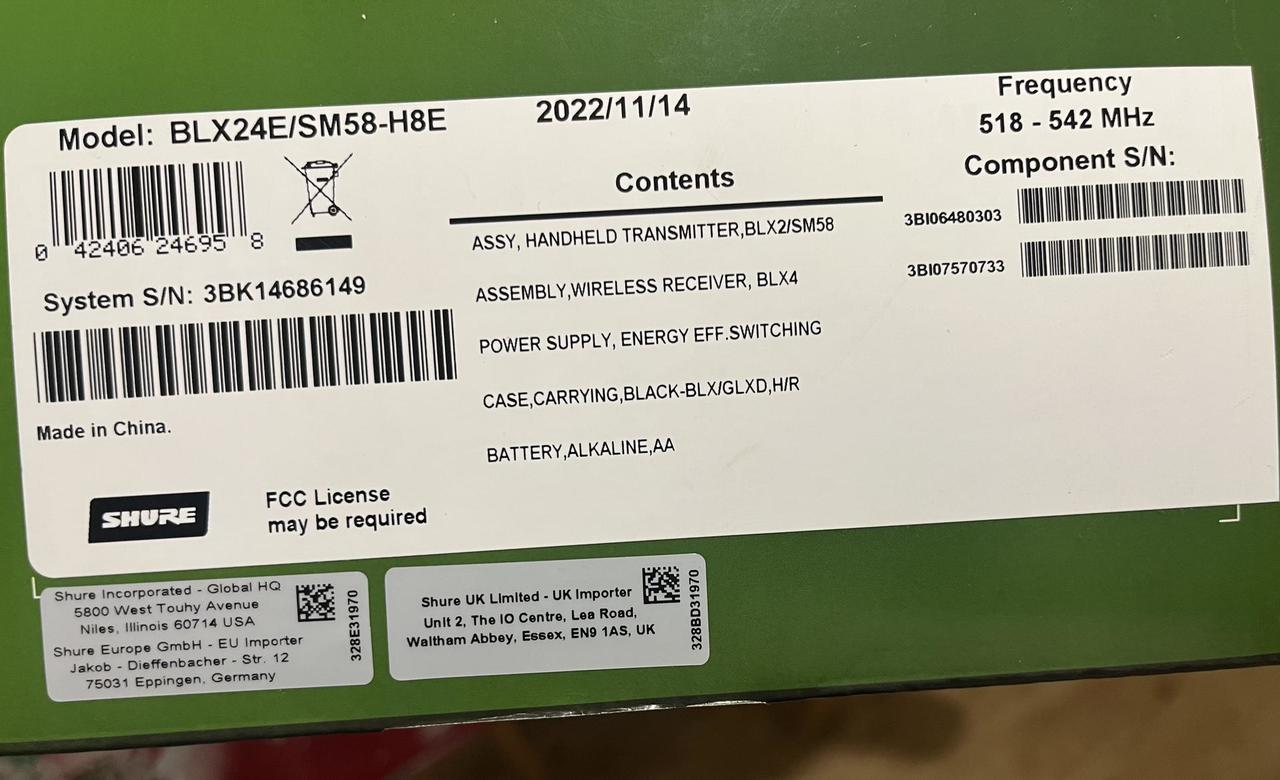 Bezdrátový set SHURE 20BLX24E/SM58-H8E