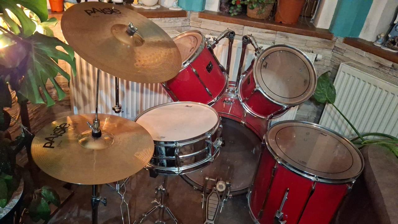 Prodám soustavu bicí značky Pearl Export doplněné o činely Paiste 201 - 14" Hi-hat, 20" Ride. Součástí je 5 párů paliček Fantastick a stojan na noty.