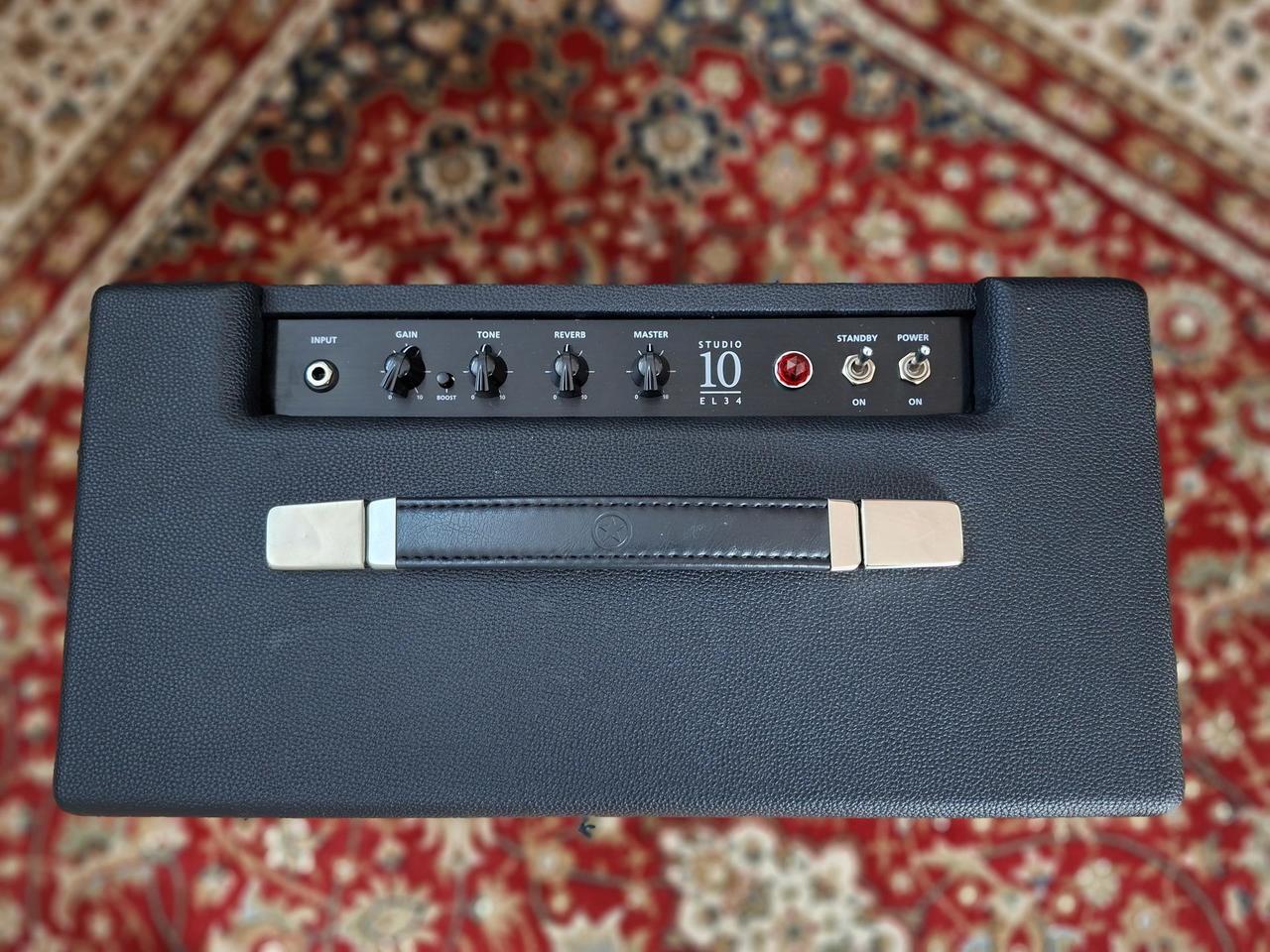BLACKSTAR Studio 10 EL34 je jednokanálové kytarové kombo s klasickým britským lampovým zvukem. Uplatní se ve studiu, zkušebně nebo na menších pódiích. Aparát je v předzesilovači osazen jednou elektronkou ECC83, ve výkonovém stupni je použita lampa EL34. Kombo je vybaveno jednoduchým ekvalizérem, externí efektovou smyčkou a sluchátkovým / linkovým výstupem s emulací zvuku kytarového boxu. Jako příslušenství dodává výrobce nožní pedál FS-4S s jedním přepínačem, pomocí kterého lze ovládat funkci Boost. Vlastnosti Kombo je osazeno jedním 12" reproduktorem a disponuje celkovým výkonem 10 W. Pro úpravu zvuku má hráč k dispozici potenciometry Gain, Tone (jednoduchý ekvalizér / tónová clona) a Master. Charakter zvuku lze dále změnit přepínačem Boost, který zajišťuje dodatečné zkreslení. Funkci lze ovládat pomocí přiloženého nožního spínače FS-4S. Kromě nástrojového vstupu jsou všechny hlavní propojovací terminály umístěny na zadní straně – výstupy pro připojení externího reproboxu, konektory efektové smyčky, linkový vstup a sluchátkový a symetrický DI výstup se simulací zvuku kytarového boxu.