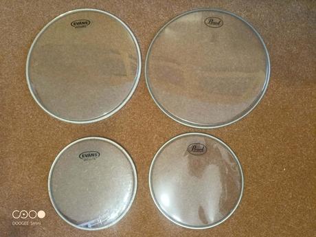 Evans 10" (200 Kč) a 14" (300 Kč) - hrané, ale ještě použitelné. Pearl - 10" (200 Kč) a 14" (300 Kč) - byly používané jako rezonanční. Při koupi všech čtyř blan zdarma poštovné (do150 Kč).
