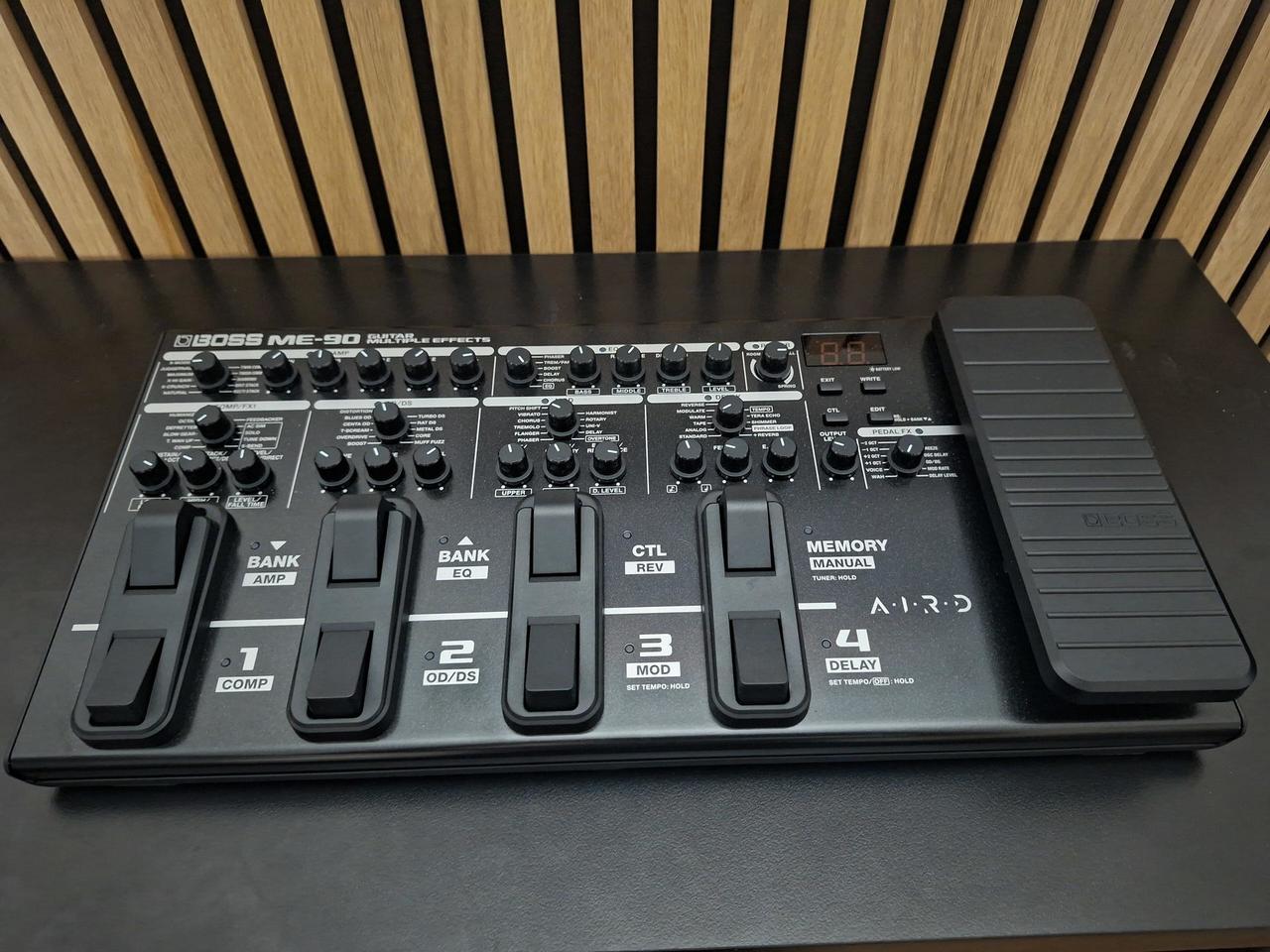 ME-90 je dosud nejpokročilejší model ME, který nabízí výjimečnou kvalitu zvuku s 24-bitovým AD/DA a 32-bitovým floating point zpracováním, vlajkové modely AIRD zesilovačů, IR nahrávání, efektovou smyčku a další. Tento všestranný procesor typu vše v jednom, kompaktní, napájený z baterie a naplněný prémiovými tóny BOSS, usnadňuje vytváření přizpůsobených zvukových nastavení pro každou herní situaci.