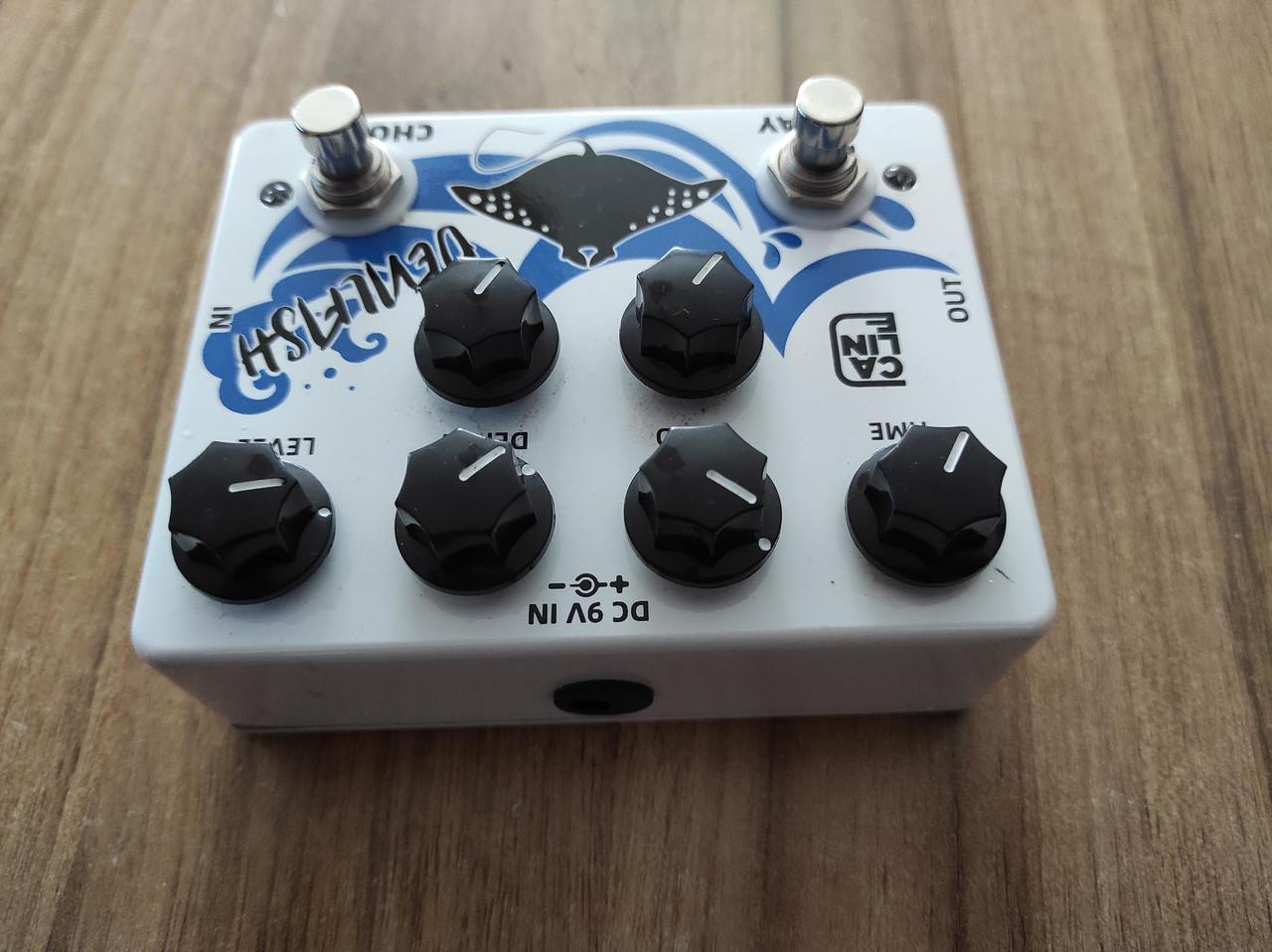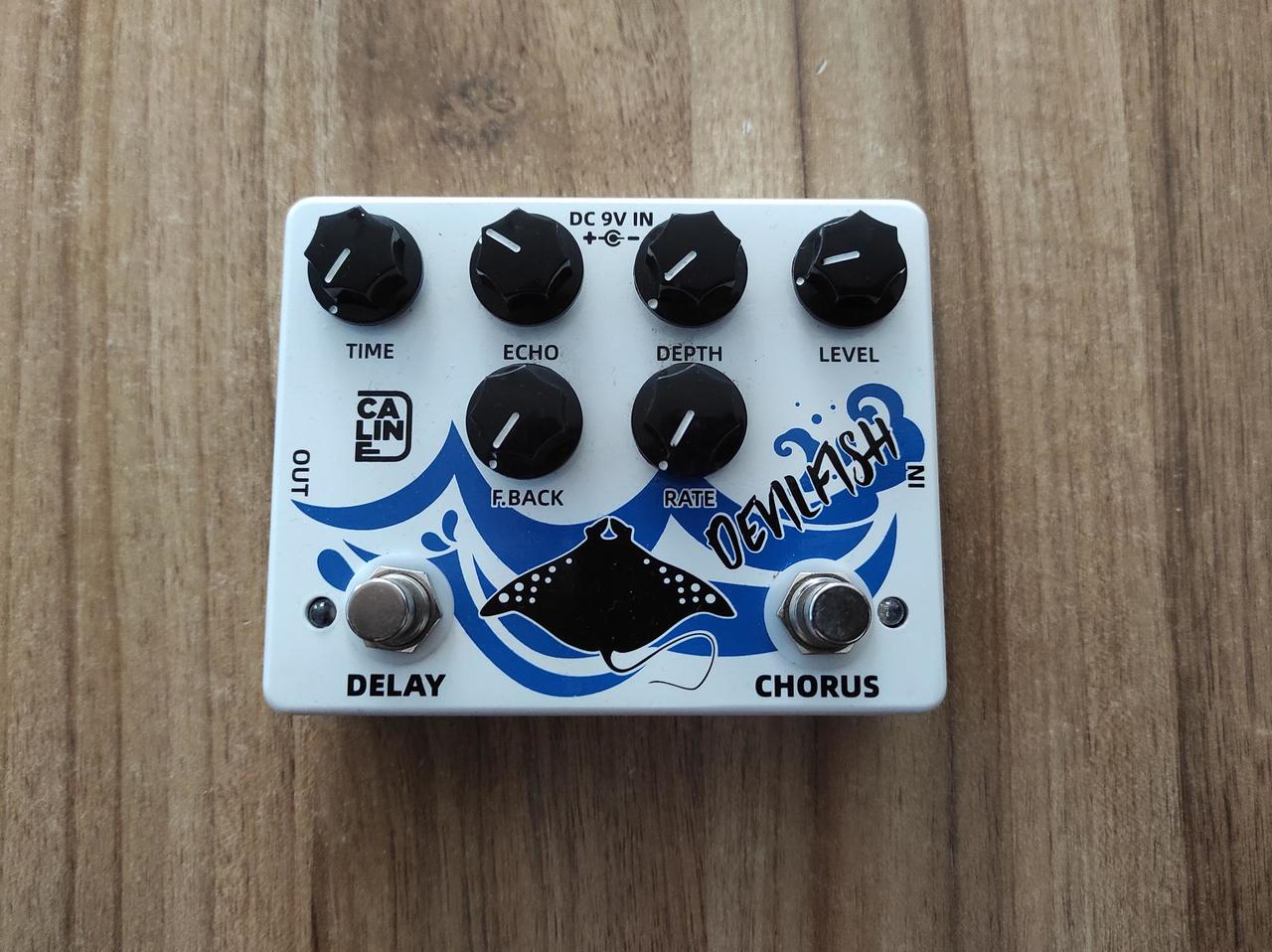 Pedálový efekt Caline Devilfish spojuje v jednom šasi klasický chorus pedál s delay/reverb efektem Caline CP-41 Ghost Rain. Sekce Delay nabízí přirozeně znějící echo/reverb, tak i dlouhé delay efekty s mnohonásobným opakováním/oscilací a sonické ambientní plochy (25 – 600 ms delay time), druhý obvod pedálu nabízí plný prostorový zvuk chorus efektu s jehož přidáváním docílíte výrazné oscilace s již slyšitelným rozladěním, tzv. „sea sick“ efekt. Oba obvody lze používat odděleně i simultánně, kdy se jejich zvuky spojí a vytvoří působivé modulované ambientní plochy.