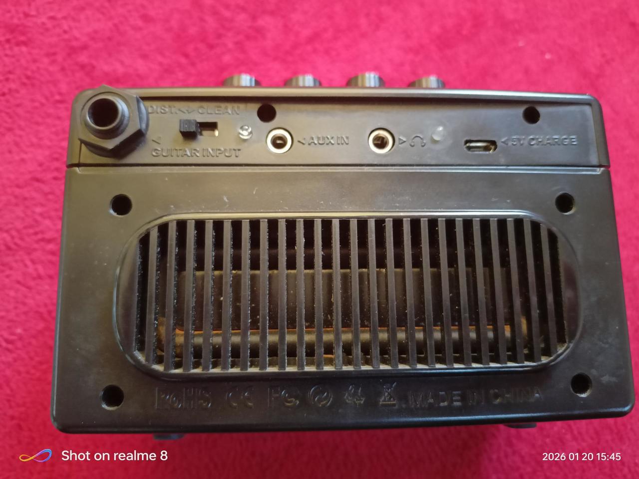 Prodam zachovaly mini tranzistorovy aparat znacky Caline.cvicil jsem pres nej pouze doma. Dva kanaly - clean a distortion.Idealni na domaci cviceni pro zacatecnika.Vykon 3W. Blizsi popis viz odkaz