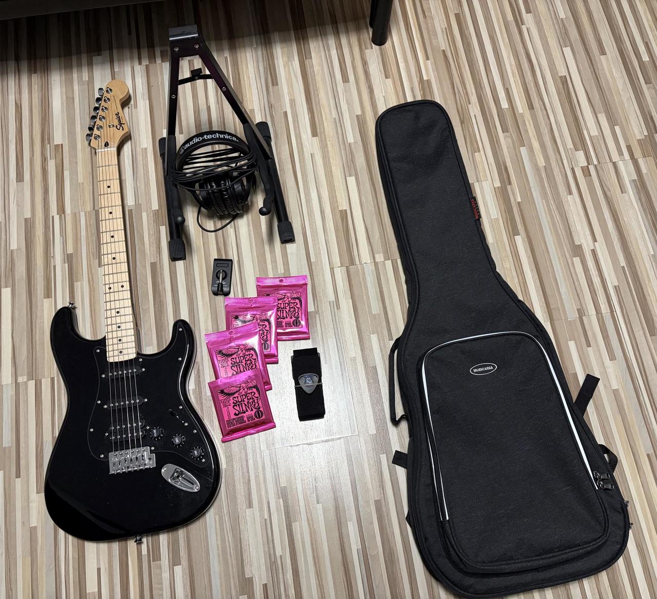 Cenově si představuji 8.500, ale jsem schopna i smlouvat. Obsahuje: - Fender Squier Sonic Stratocaster HSS MN BPG BLK - Sluchátka značky Audio-Technica, bohužel si nejsem jistá přesným typem, ale stály okolo 1.500. - Fender Mustang Micro Plus Následně i struny Ernie Ball Super Slinky (9-42), otevřený balíček je plný! Je pouze nastříhnutý. :) Následně popruh, stojan na kytaru i trsátka. Prodávám jen jako sadu! Nikoli po jednotlivých kusech. !!! Prosím o zprávy, NE hovor.